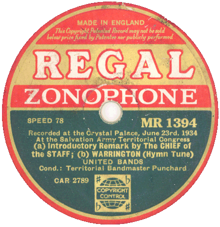 International Staff Band - UK Territorial Congress - Recorded at The Crystal Palace 23 June 1934 |