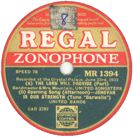United Songsters - UK Territorial Congress - Recorded at The Crystal Palace 23 June 1934 |