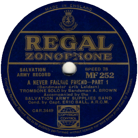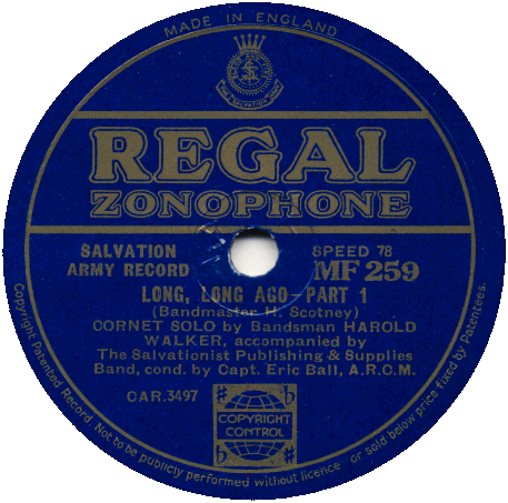 Ronald & Victor Handscombe with Cambridge Heath Band - UK Territorial Congress - Recorded at The Crystal Palace 23 June 1934 |