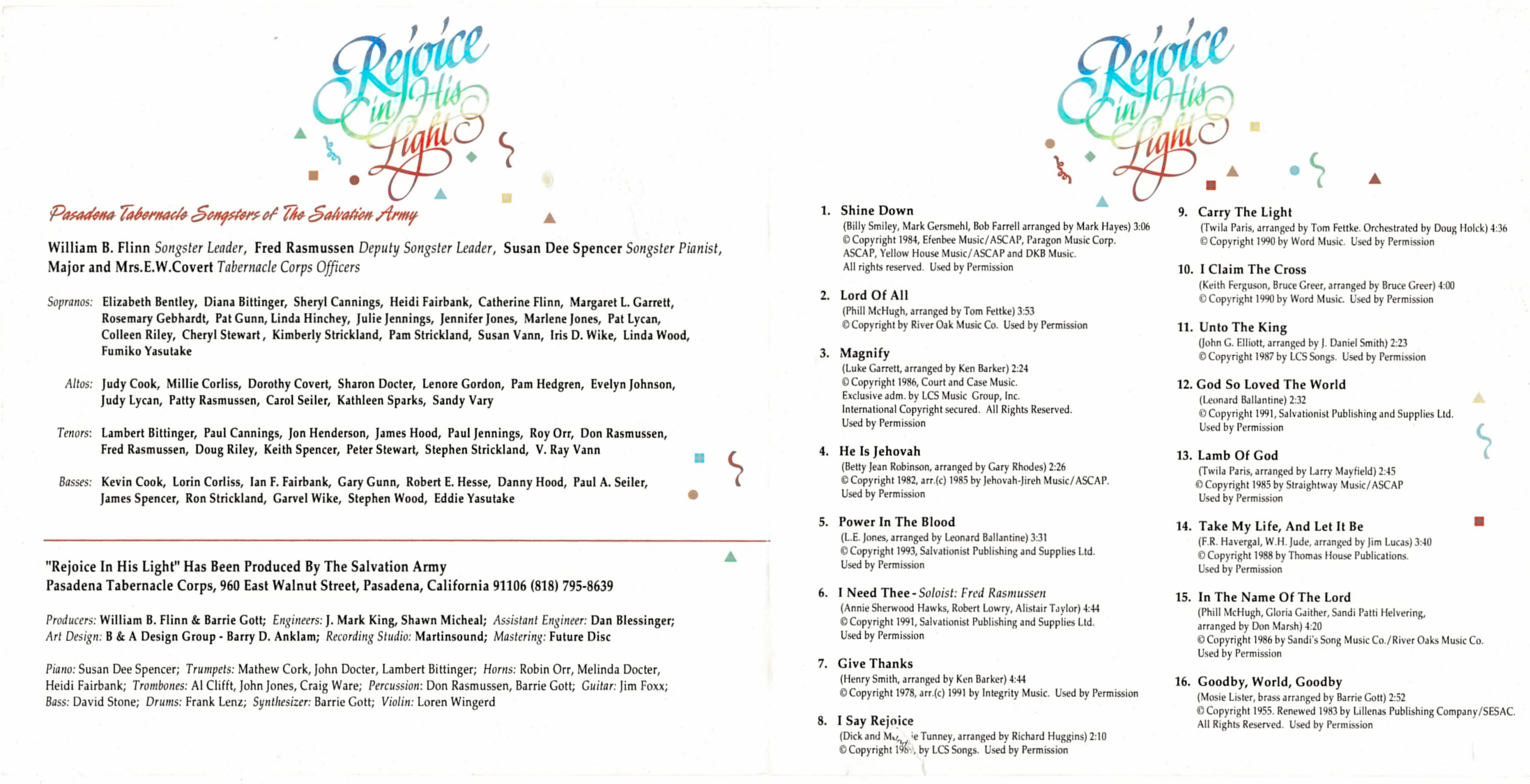 In the Name of the Lord Pasadena Tabernacle Songsters William B. Flinn Phil McHugh, Gloria Gaither, Sandi Patti Helvering
