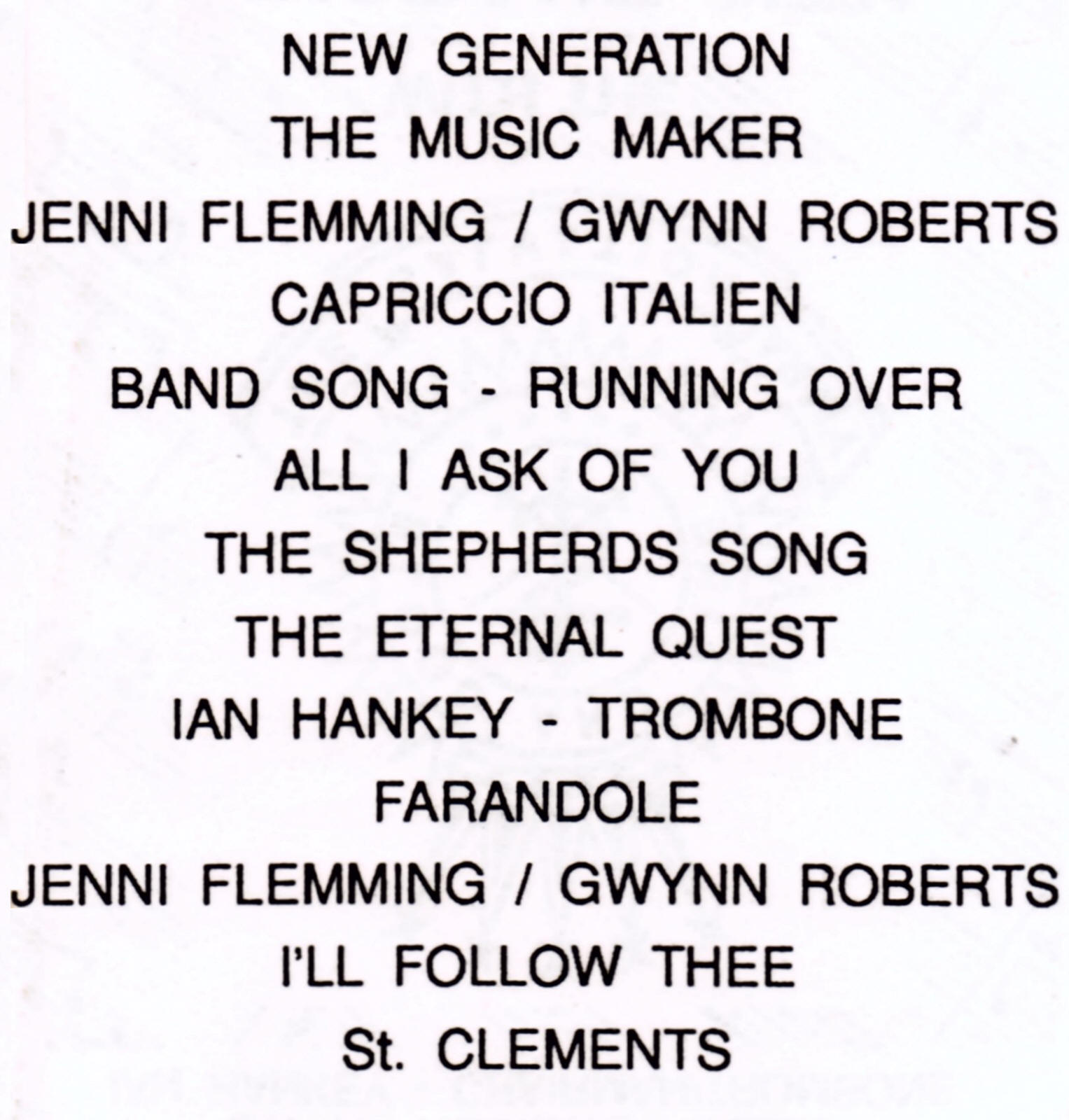 | Title Unknown | Jenni Flemming & Gwynn Roberts | Mac Carter | |