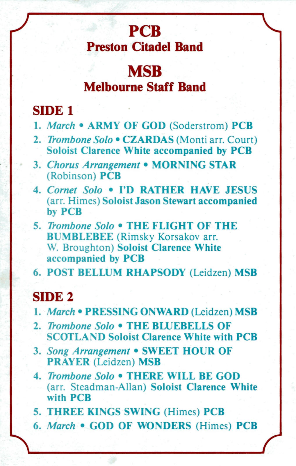 | Trombone Solo - The Flight of the Bumblebee | Preston Citadel Band - Soloist - Clarence White | Merv Collins | Rimsky Korsakov arr. W. Broughton |