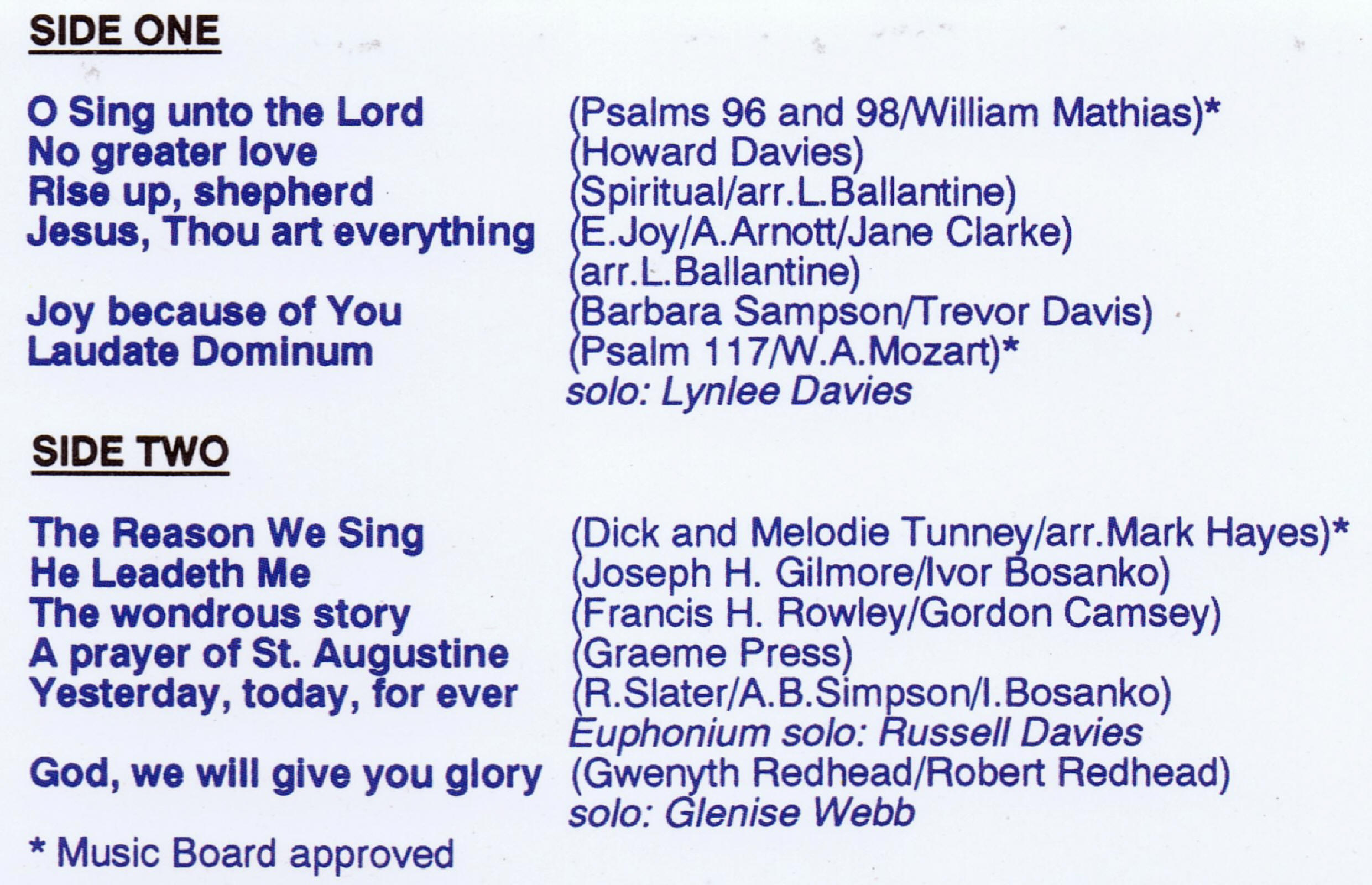 | Joy Because of You | Camberwell Songsters | Lynlee Davies | Barbara Sampson/Trevor Davis |