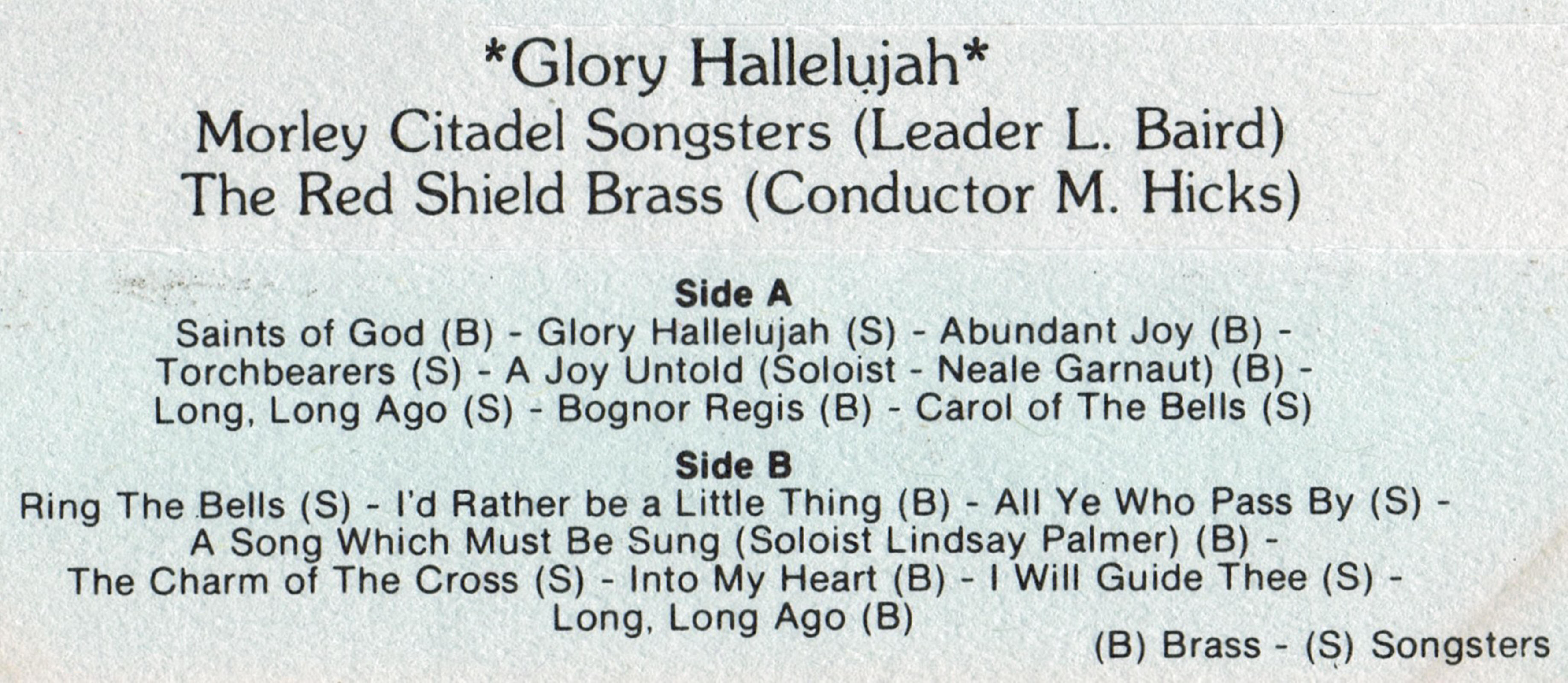 | Long, Long Ago | Morley Citadel Songsters | L. Baird | |