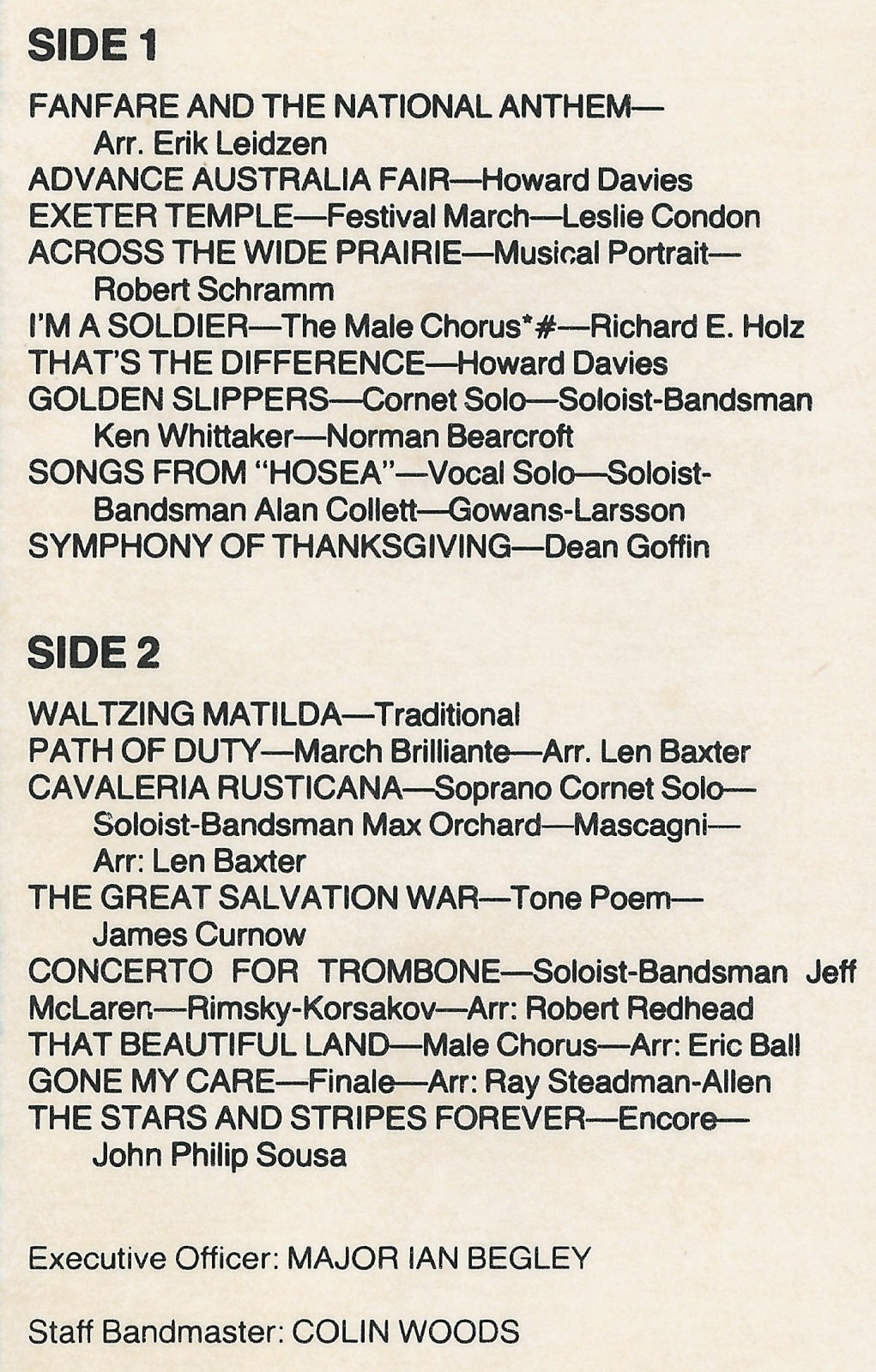 | Introduction | Melbourne Staff Band Executive Officer Major Ian Begley | ||