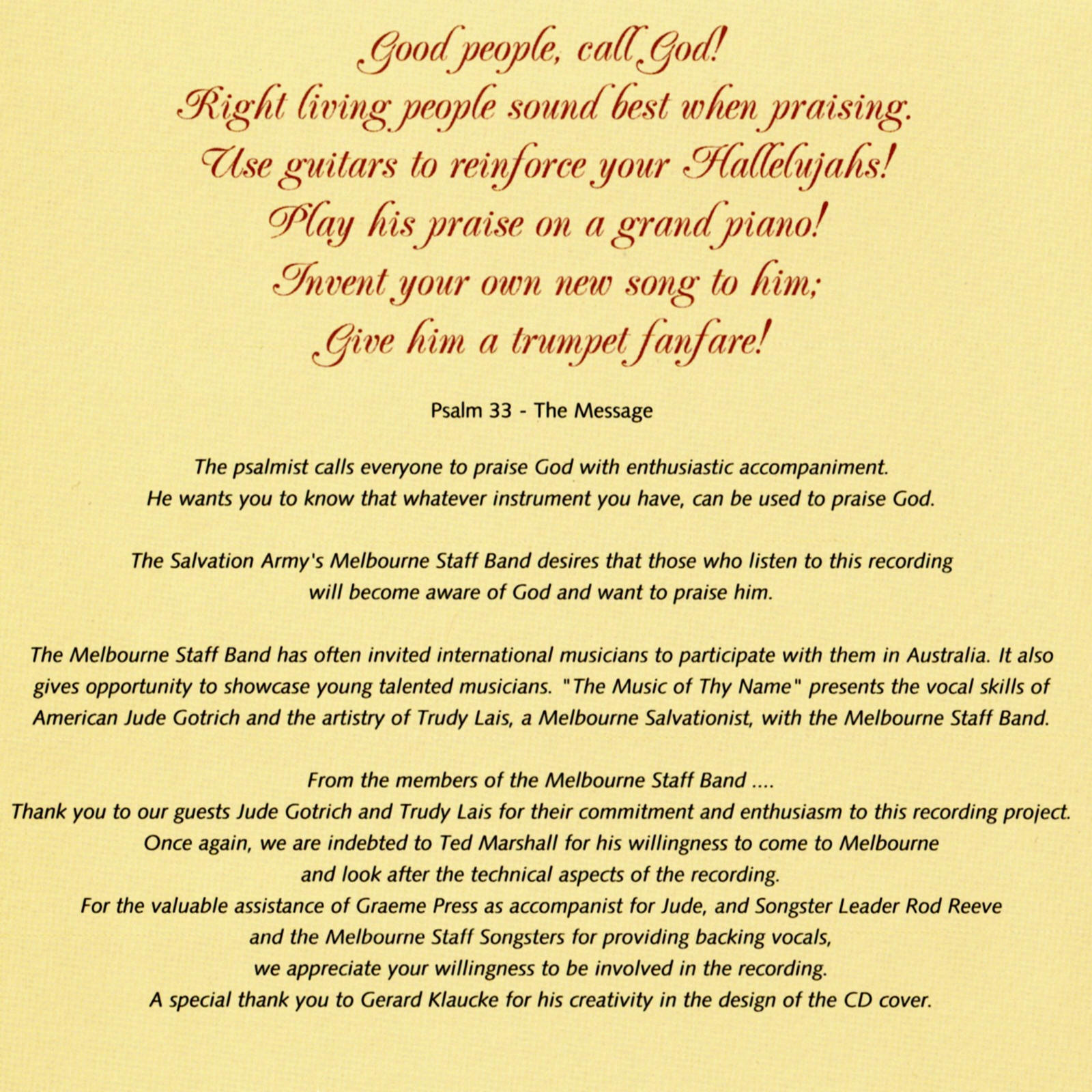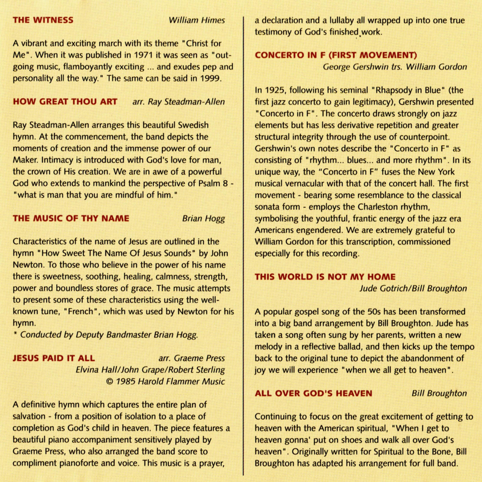 | The Music of Thy Name | Melbourne Staff Band | Brian Hogg | Brian Hogg |