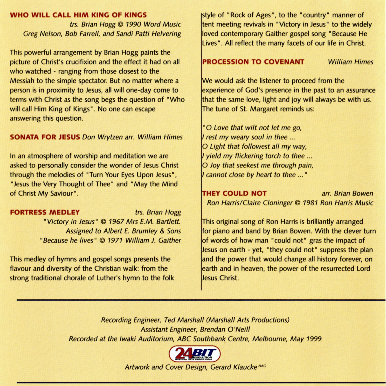 | Procession to Covenant | Melbourne Staff Band | Ken Waterworth | William Himes |