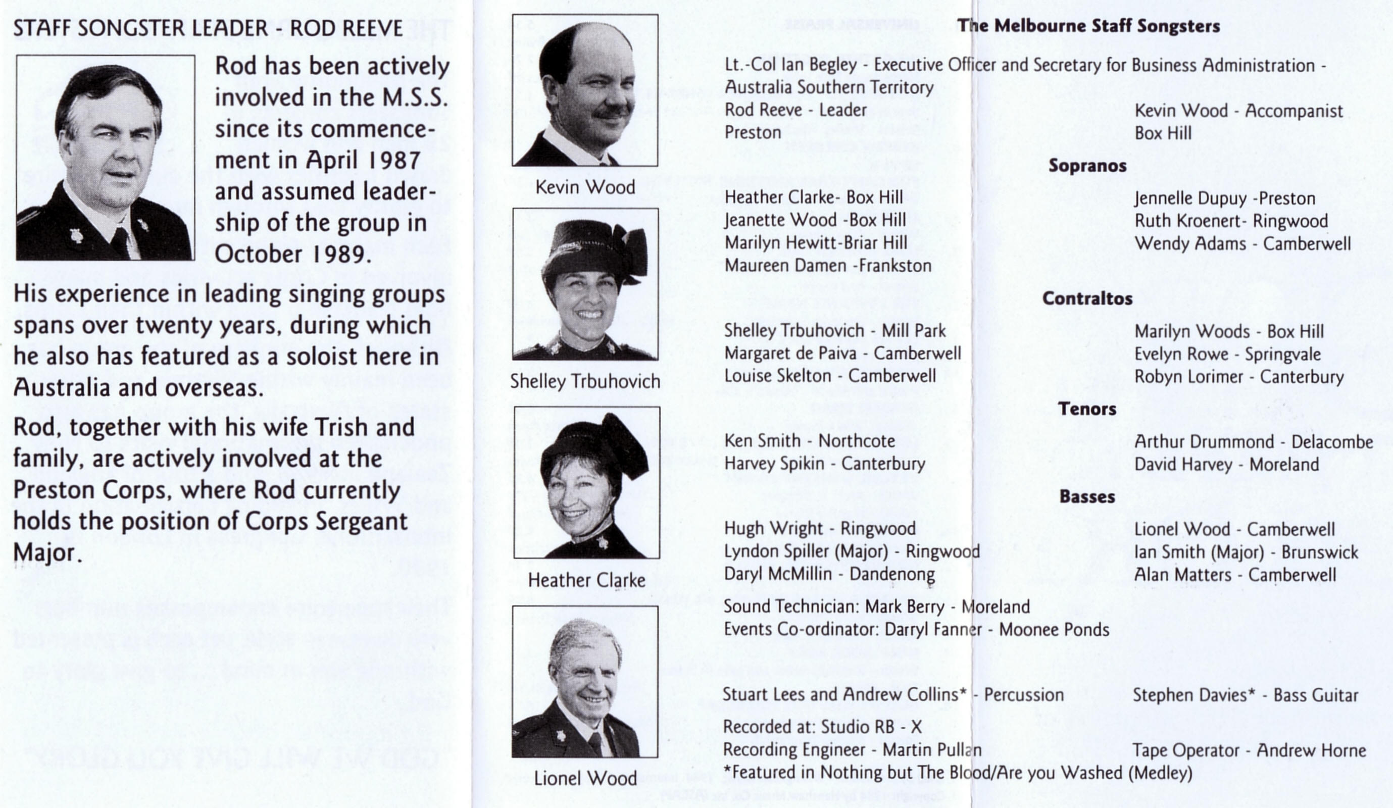 The Saviour's Name Melbourne Staff Songsters Rod Reeve Words; Frederick Whitfield, Music; Dick Krommenhoek