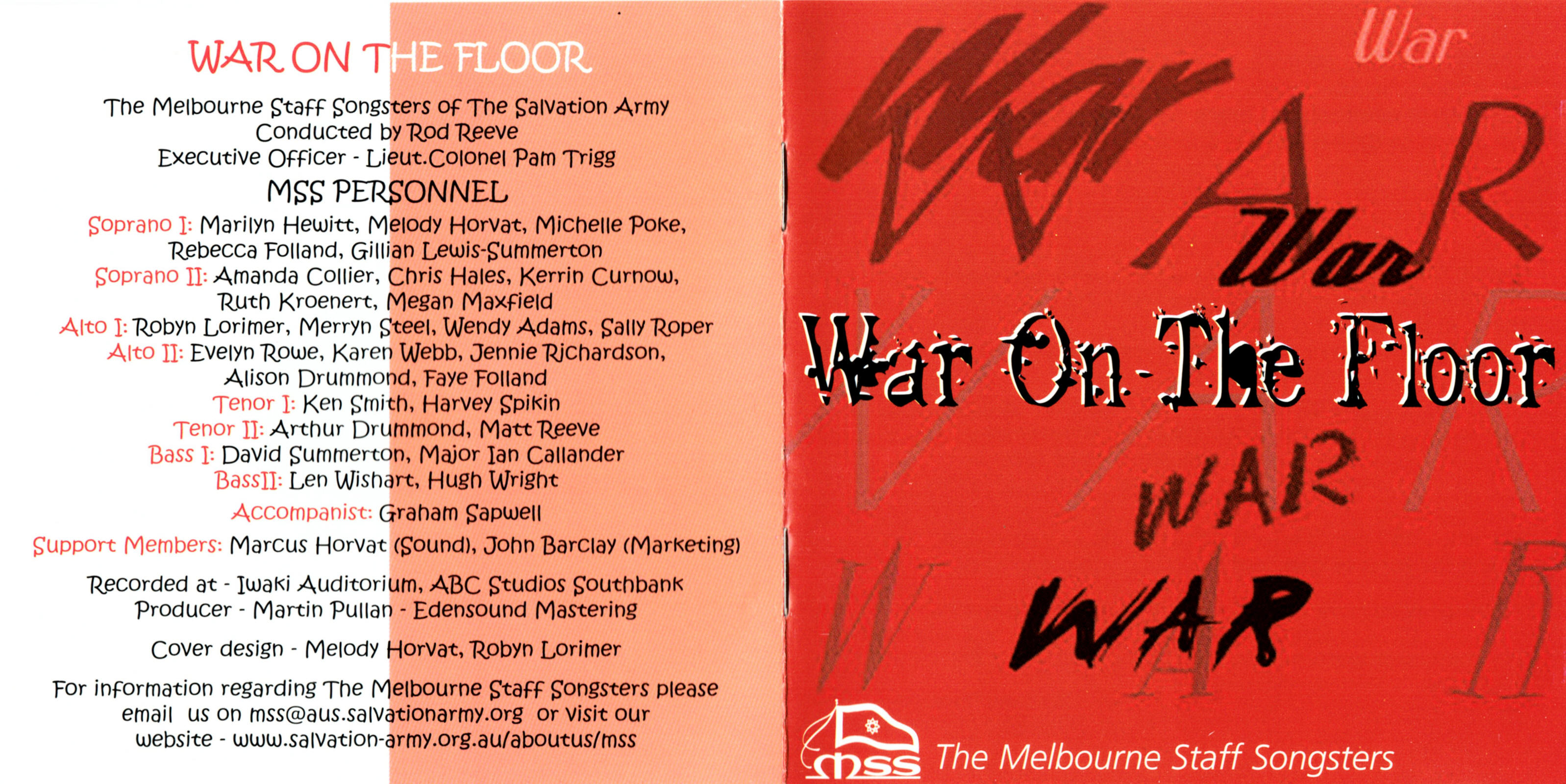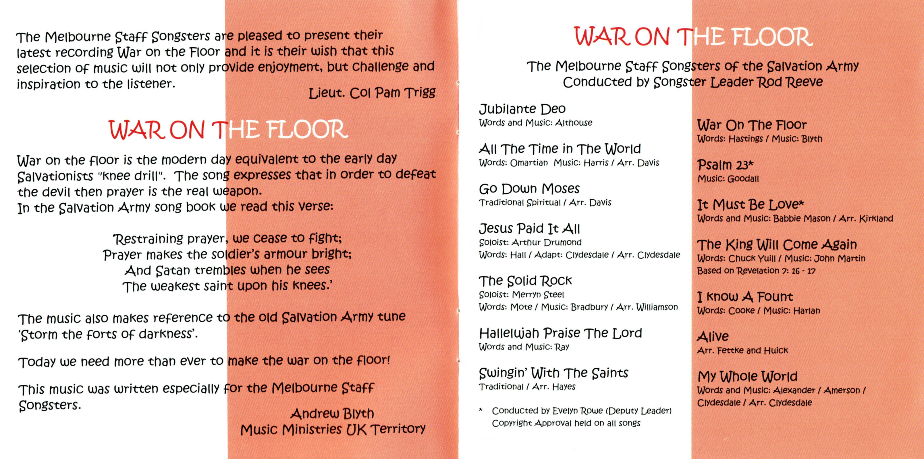 | War on the Floor | Melbourne Staff Songsters | Rod Reeve | Words; Hastings, Music; Blyth |