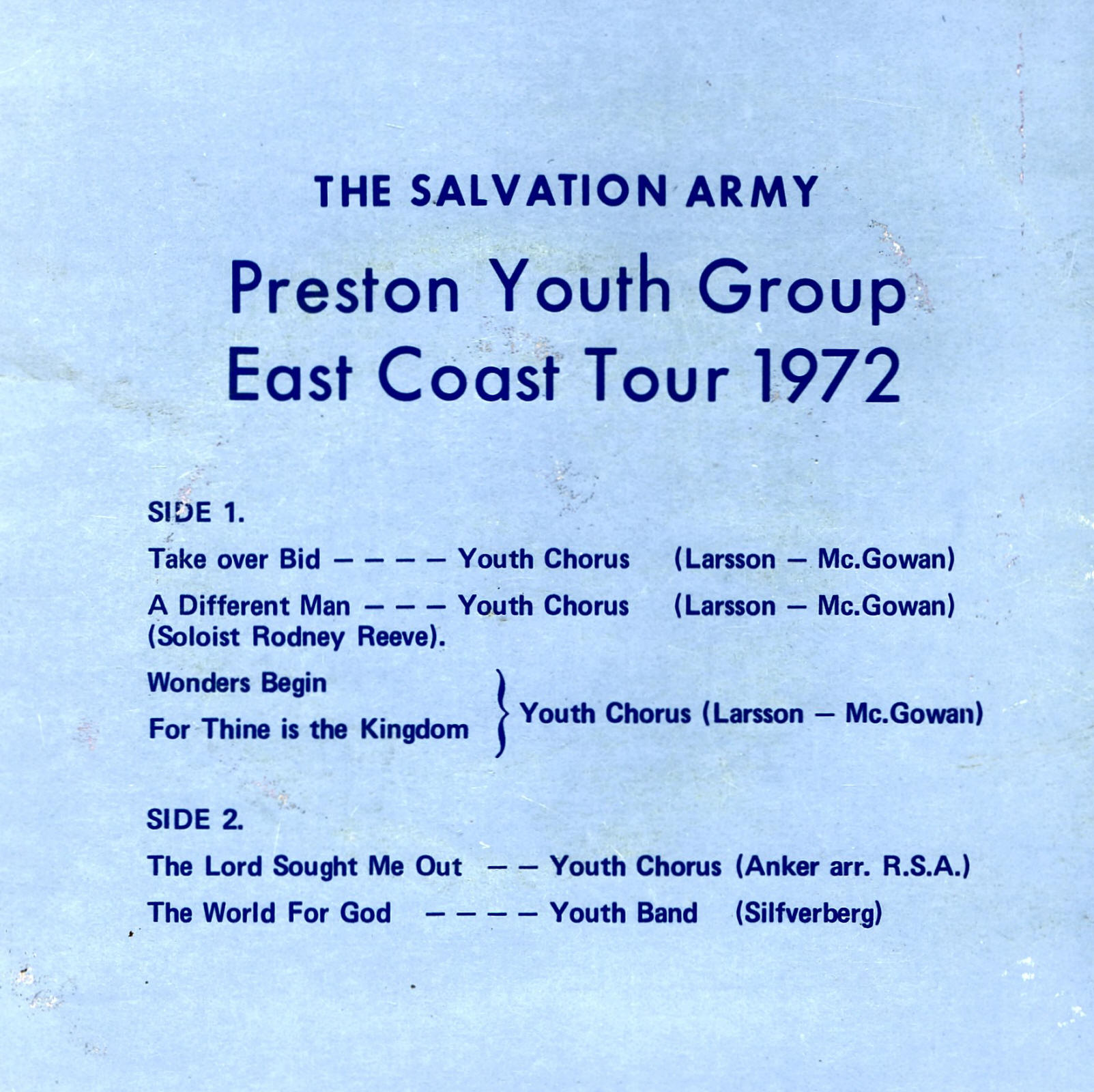 | The Lord Sought Me Out | Preston Youth Group Chorus | Anker arr. R.S.A. | |