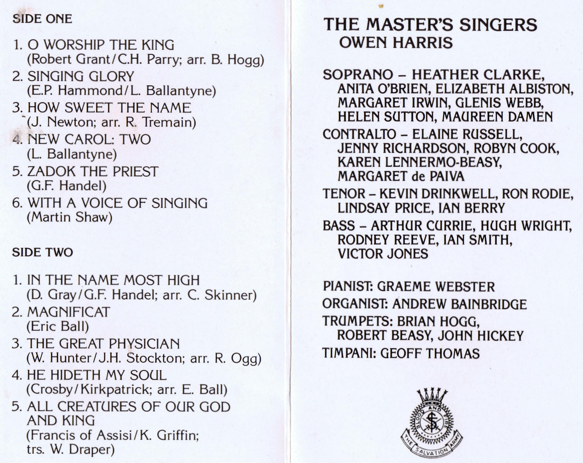 | Singing Glory | The Master's Singers | Owen Harris | E.P. Hammond/L. Ballantyne |