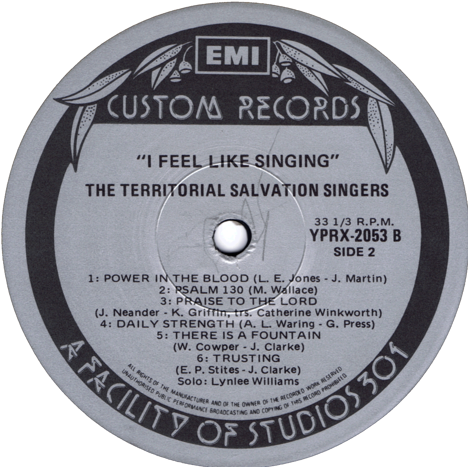 | Trusting | The Territorial Salvation Singers - Soloist - Lynlee Williams | Marian Wallace | Words; E.P. Stites Music; Jane Clarke |