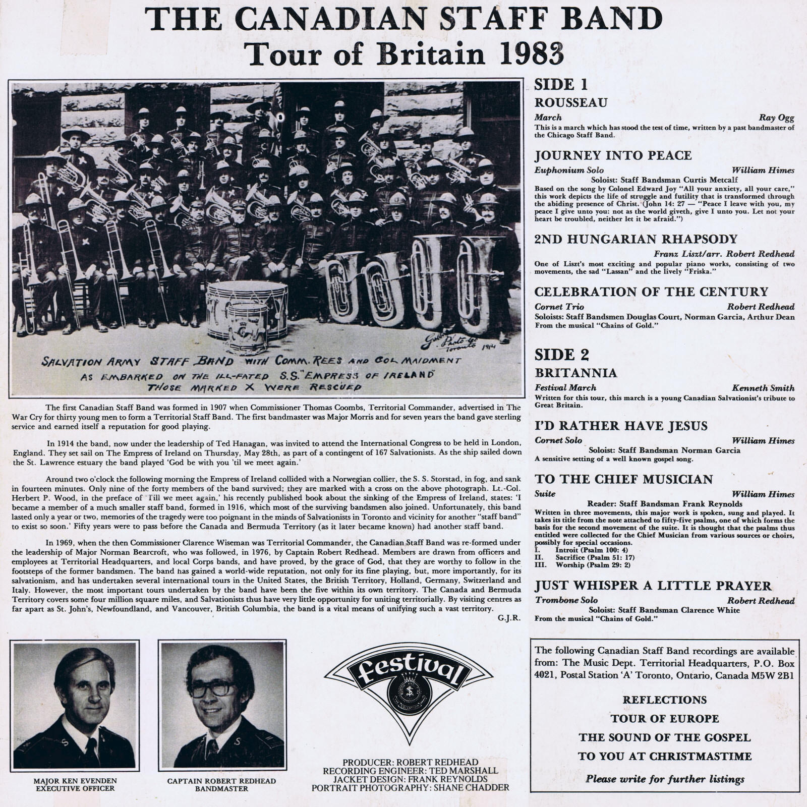 | Suite - To the Chief Musician | Canadian Staff Band | Capt. Robert Redhead | William Himes |