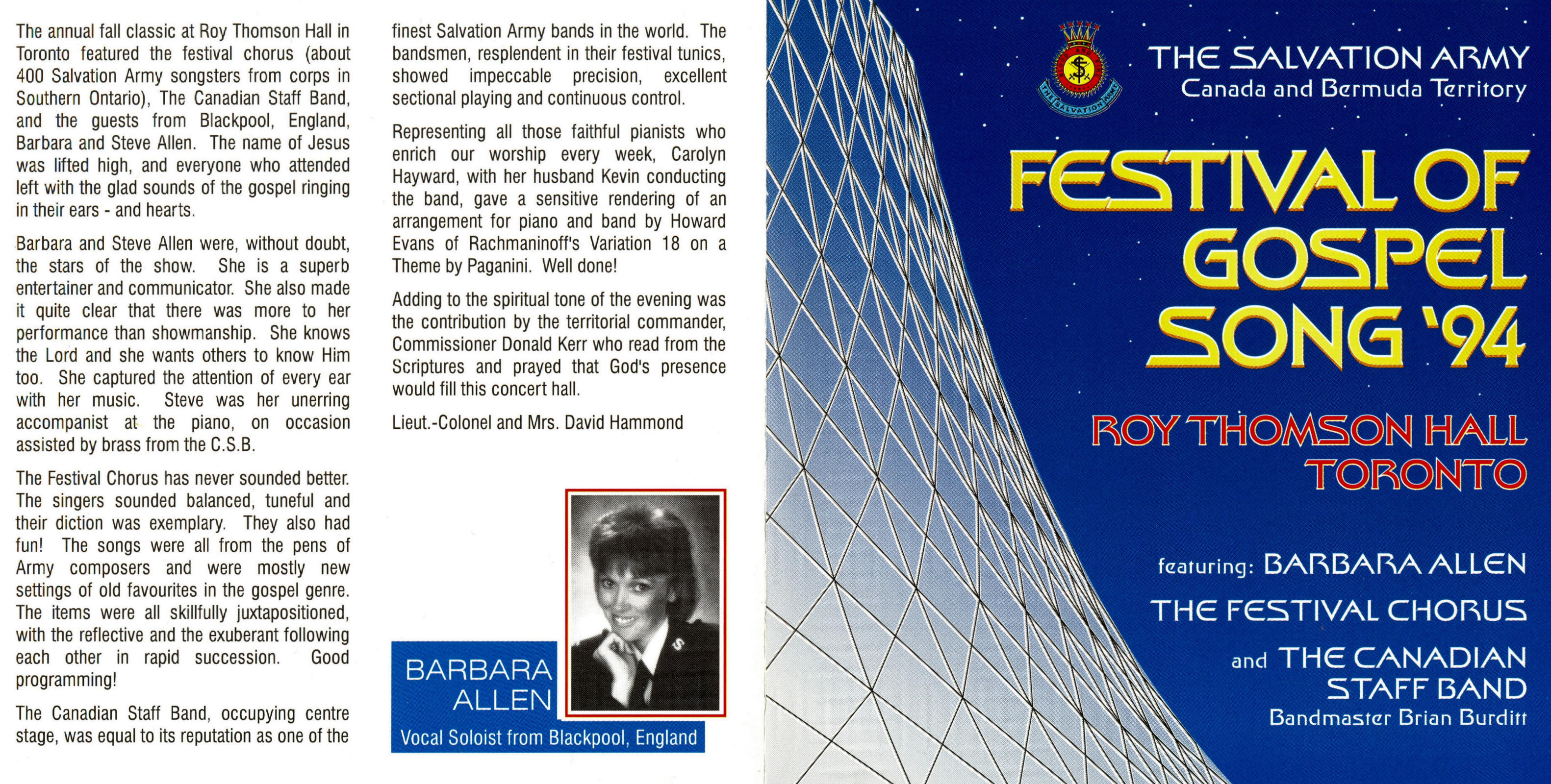| Joyful, Joyful | Congregation, Festival Chorus & Canadian Staff Band | Brian Burditt | arr. Leonard Ballantine |