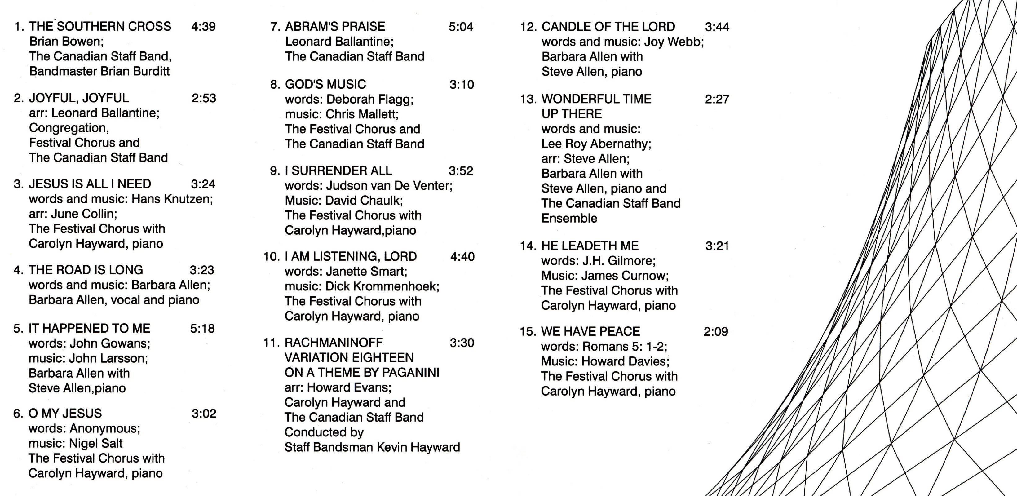 | I Surrender All | Festival Chorus with Carolyn Hayward, piano; | Words; Judson van De Venter Music; David Chaulk |