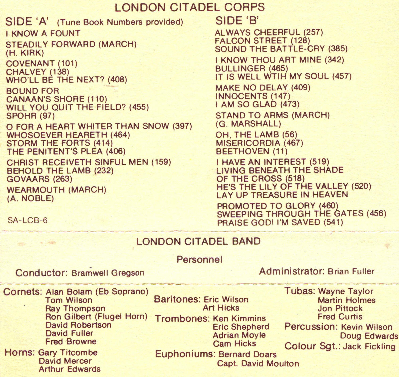 London (Ontario) Citadel Band | Bramwell Gregson | |