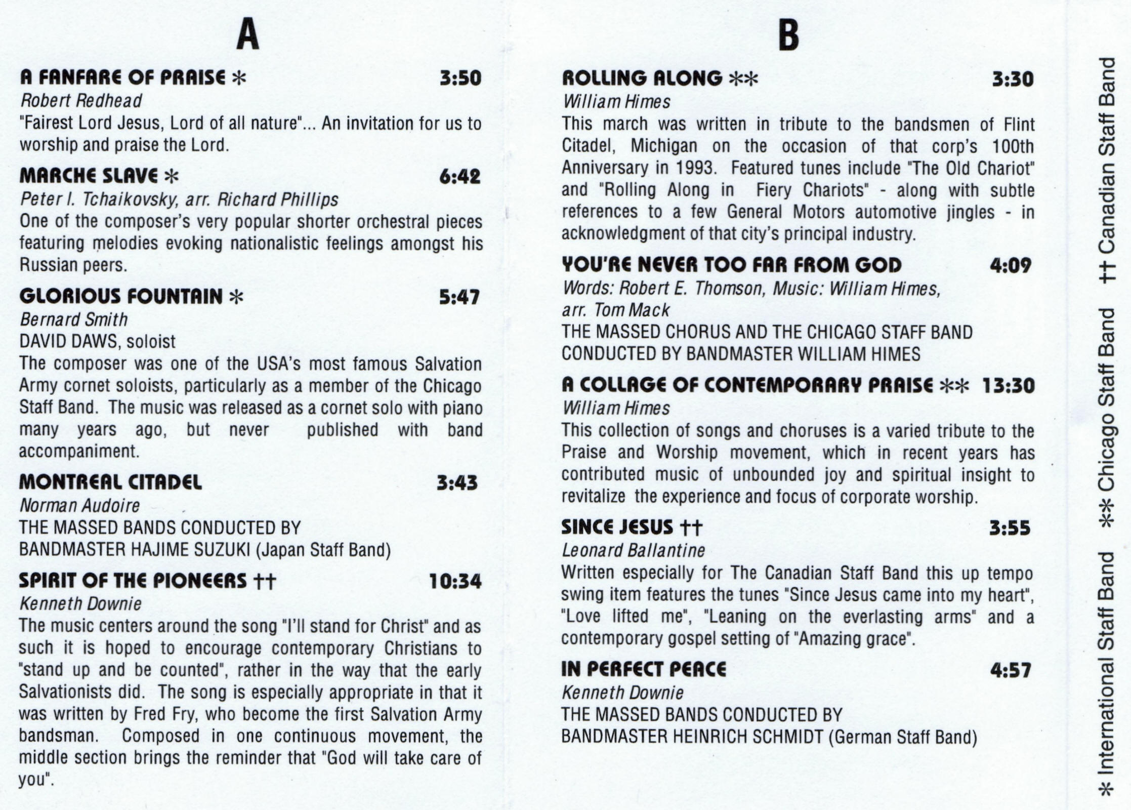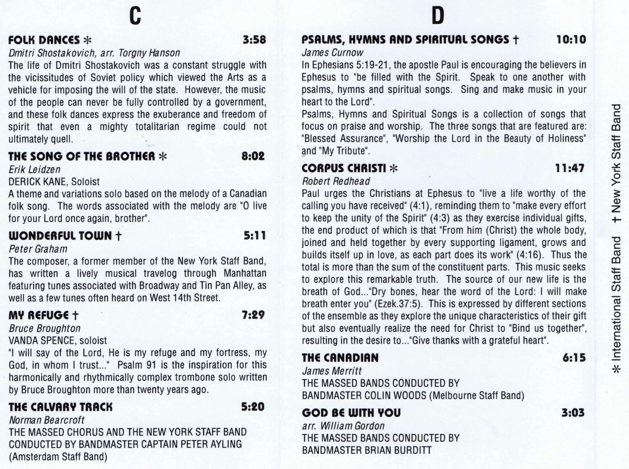 The Calvary Track Massed Chorus with the New York Staff Band Capt. Peter Ayling Norman Bearcroft