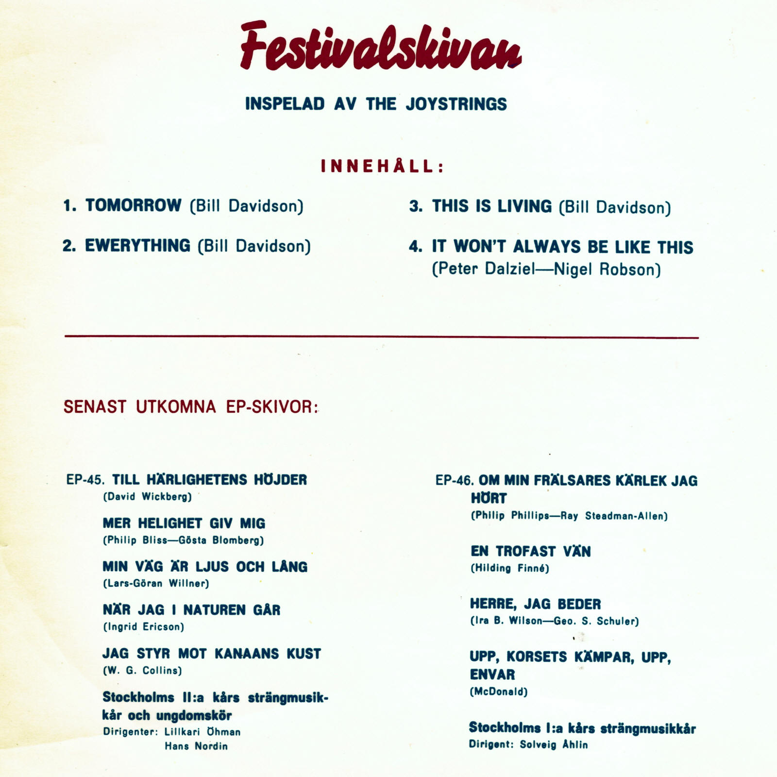 | Tomorrow | The Joystrings | Bill Davidson | |