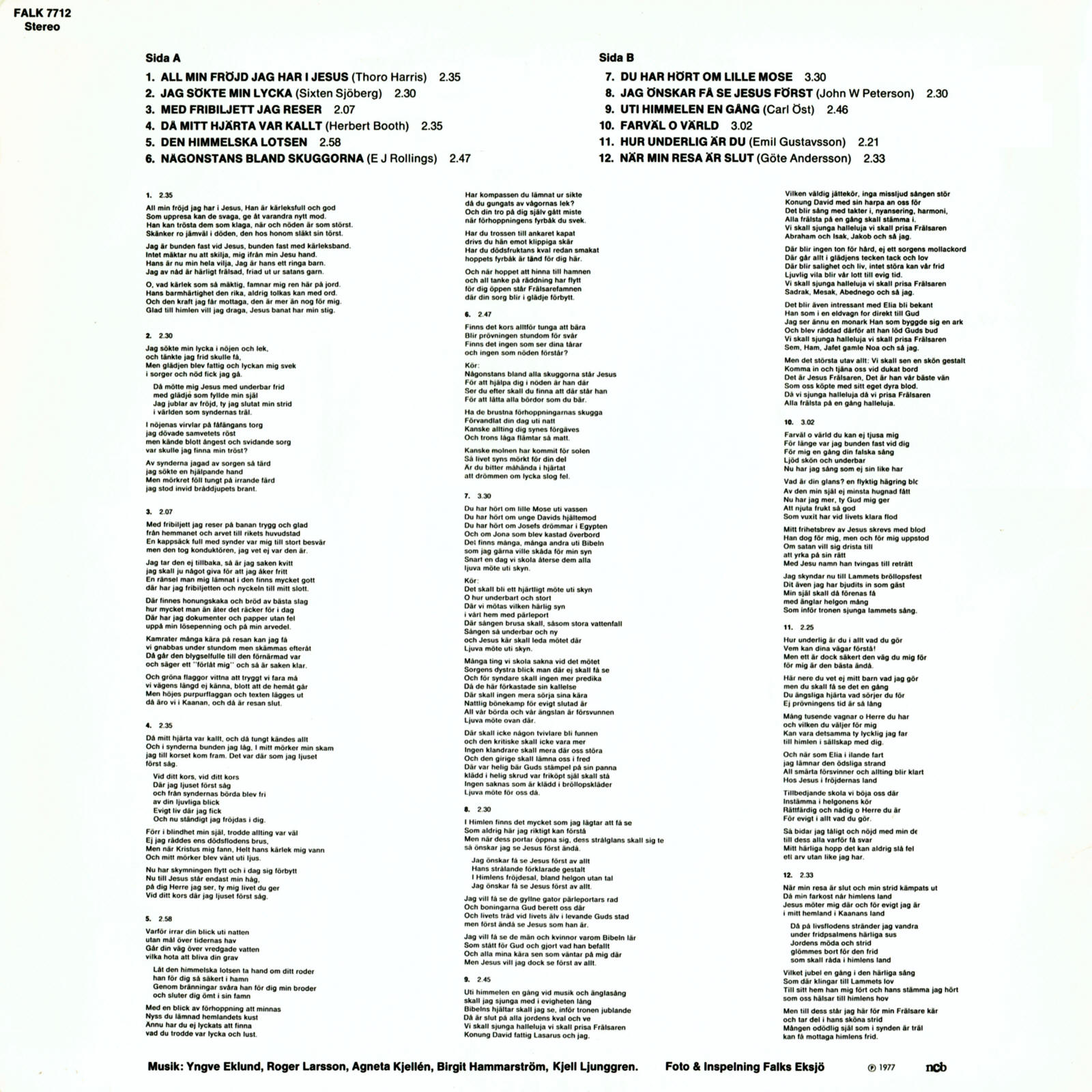 | All Min Fröjd Jag Har i Jesus | Yngve Eklund & Roger Larsson | Thoro Harris | |