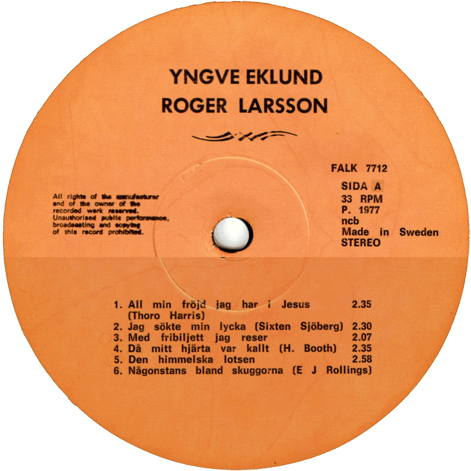 | Jag Aökte Min Lycka | Yngve Eklund & Roger Larsson | Sixten Sjöberg | |