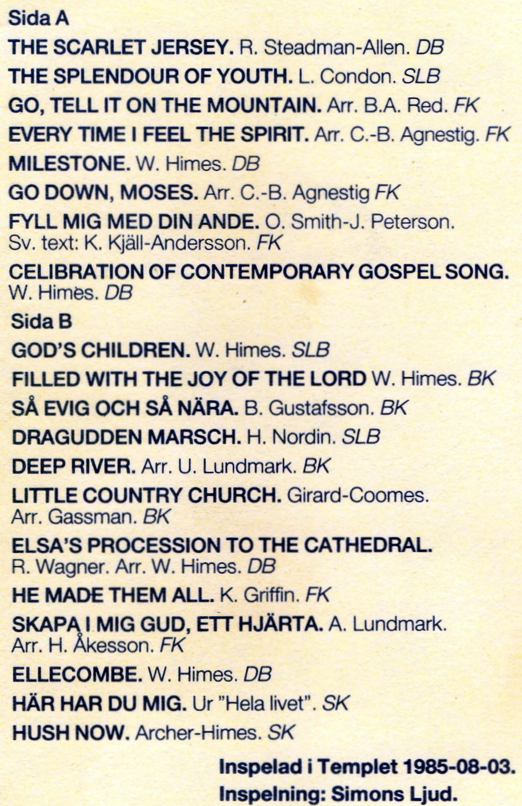 | Sa Evig Och Sa Nara | Blandande Koren | B. Gustafsson | |