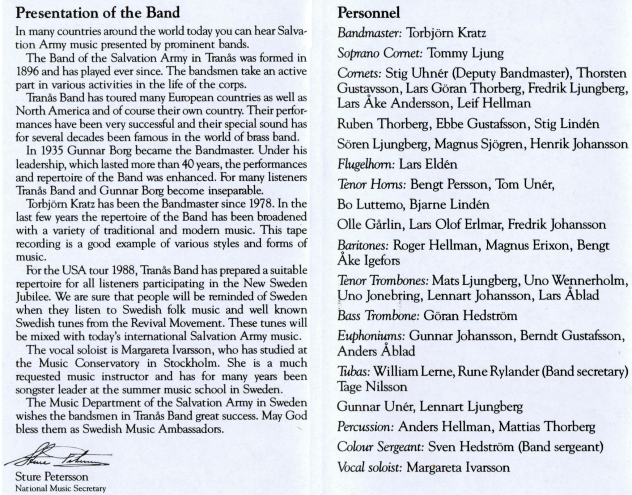 | Swedish Psalm | Tranås Salvation Army Band | Torbjörn Kratz | arr. H. Nordin |