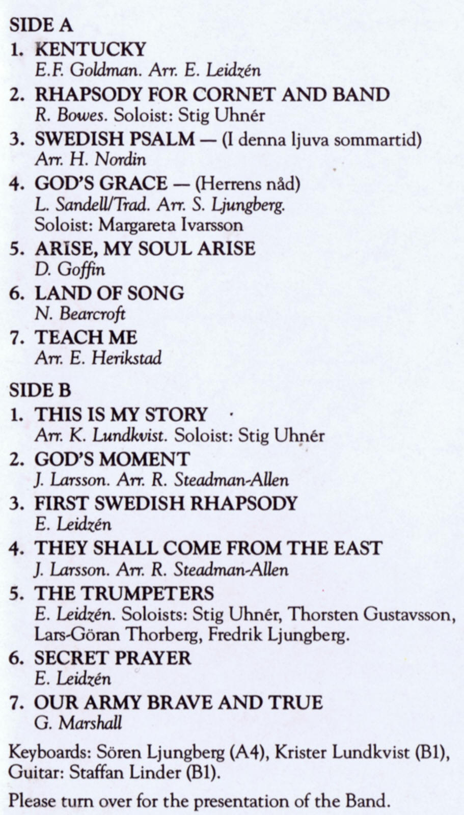| The Trumpeters | Tranås Salvation Army Band Soloists - Stig Uhnér, Thorsten Gustavsson, Lares-Göran Thorberg, Fredrik Ljunberg |