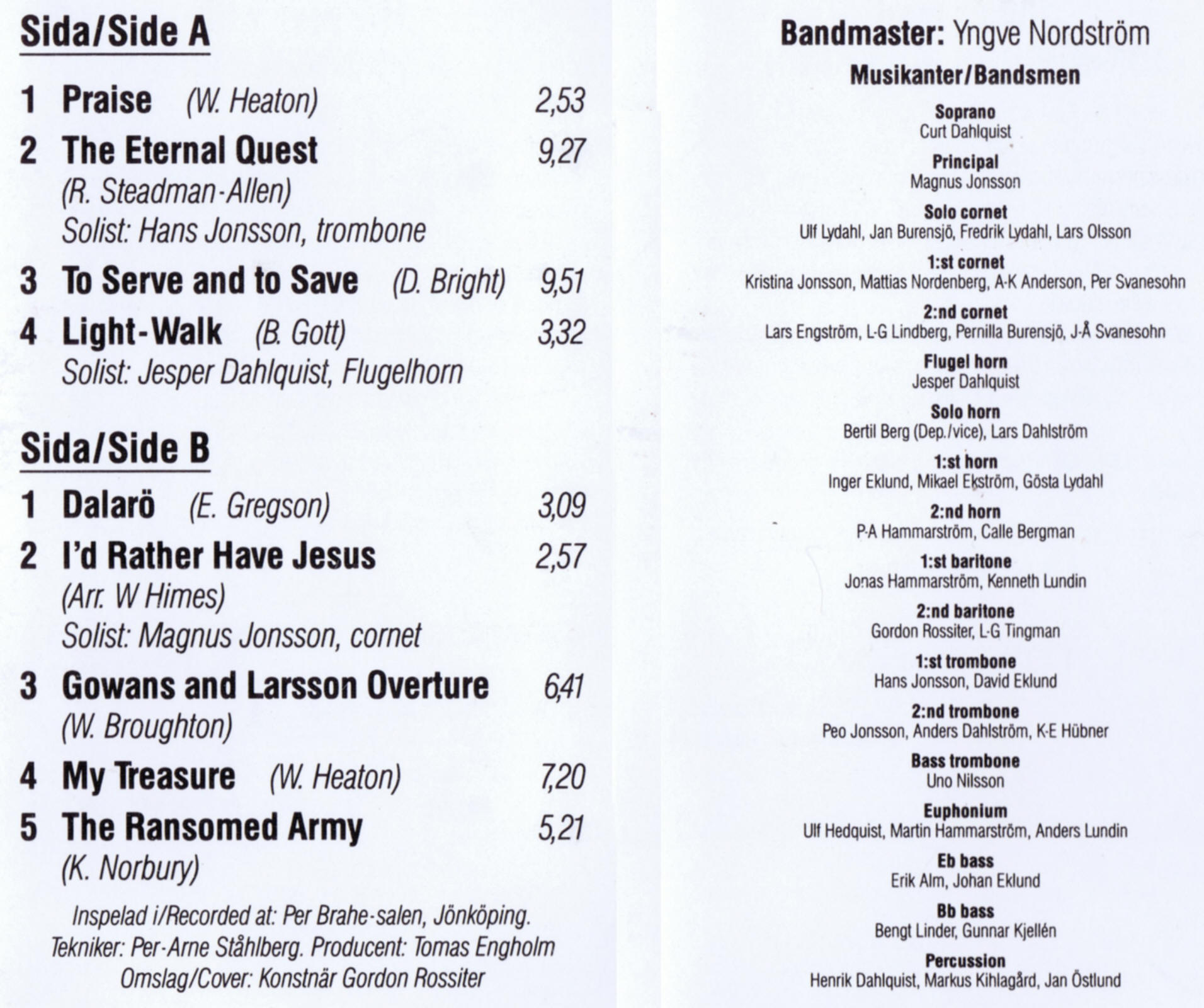 | Gowans and Larsson Overture | Jönköping Band | Yngve Nordström | W. Broughton |