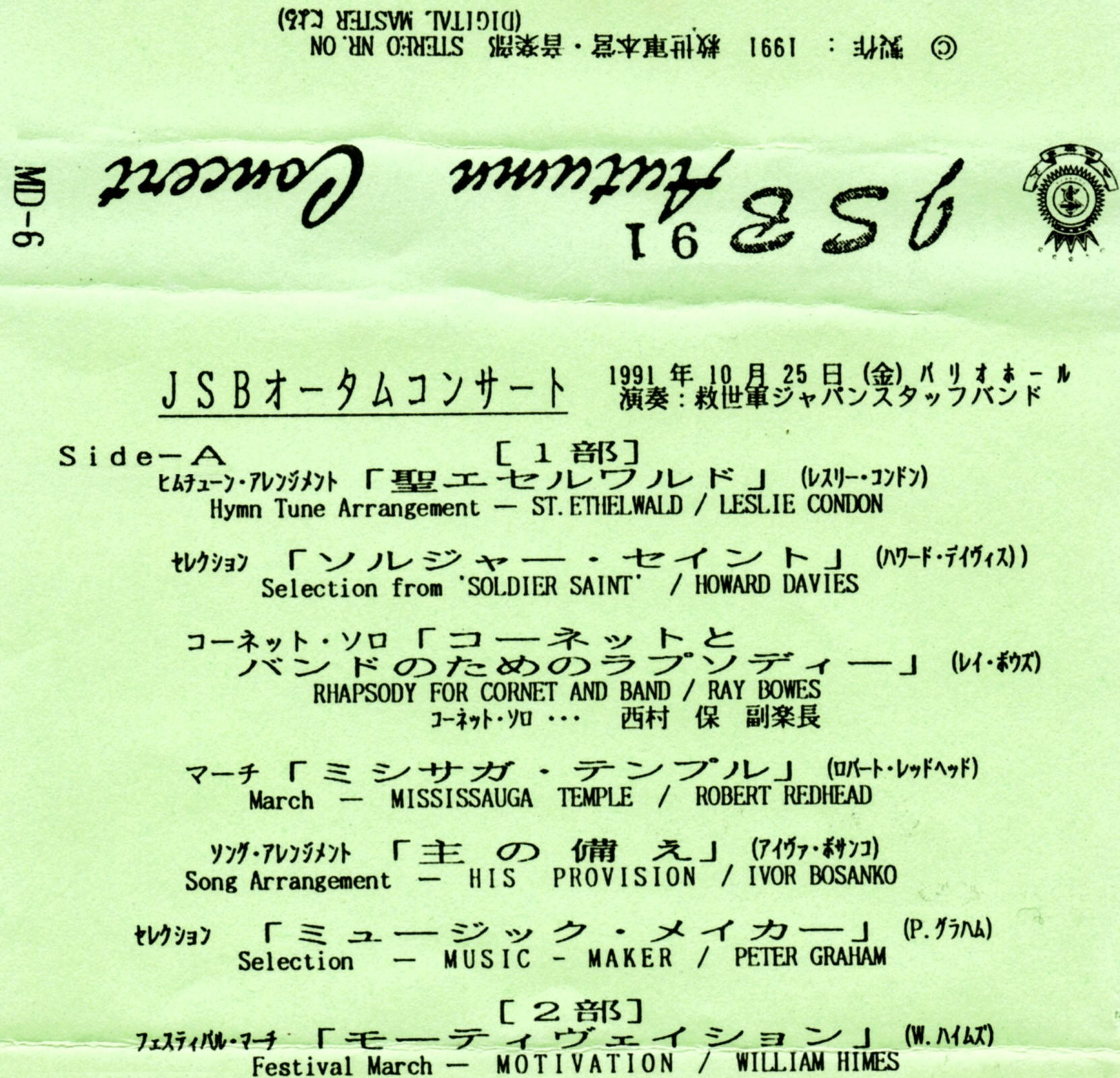 | Rhapsody for Cornet and Band | Japan Staff Band | Hajime Suzuki | Ray Bowes |