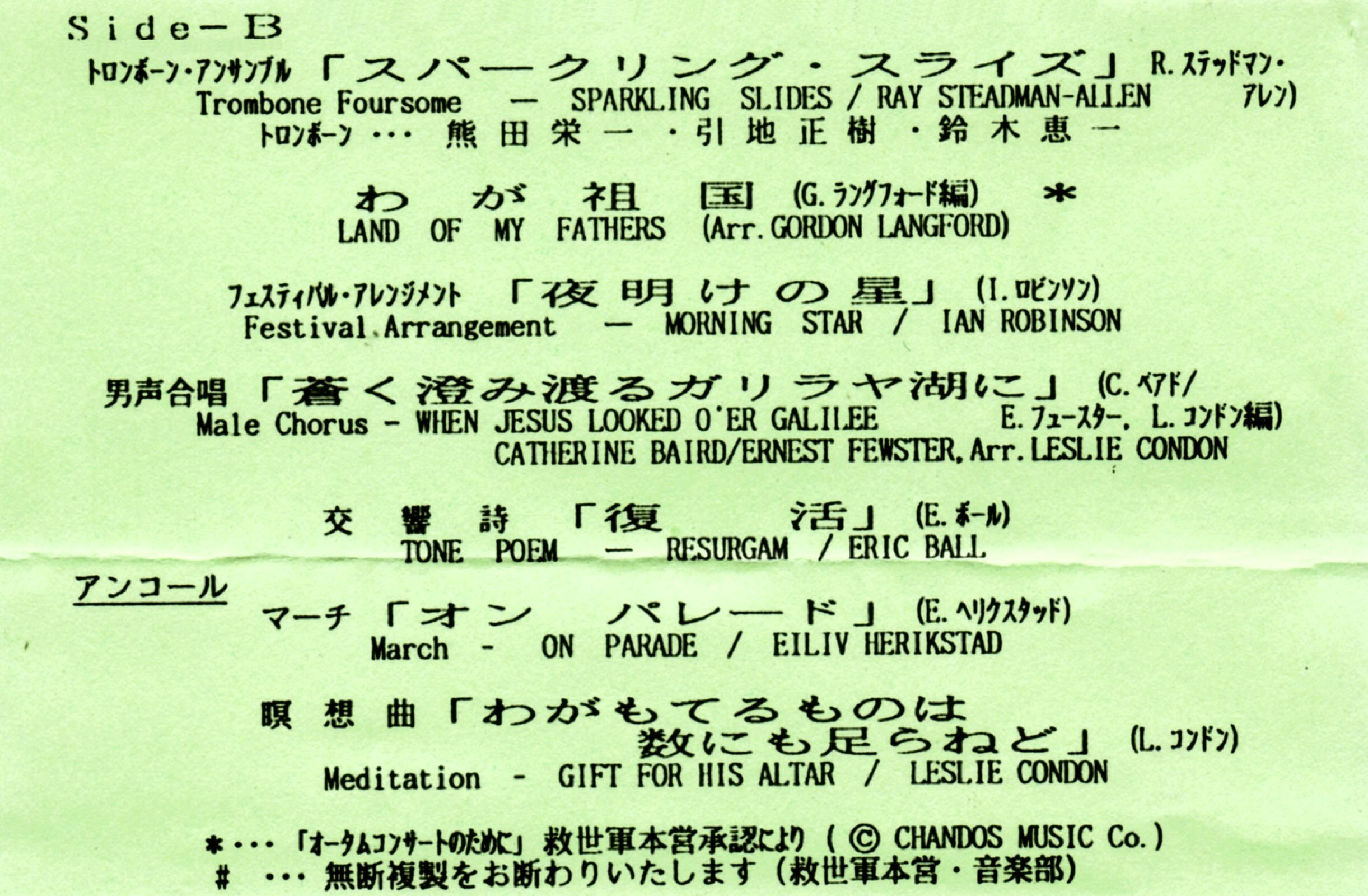 | Meditation- Gift for His Altar (Track missing) | Japan Staff Band | Hajime Suzuki | Leslie Condon |