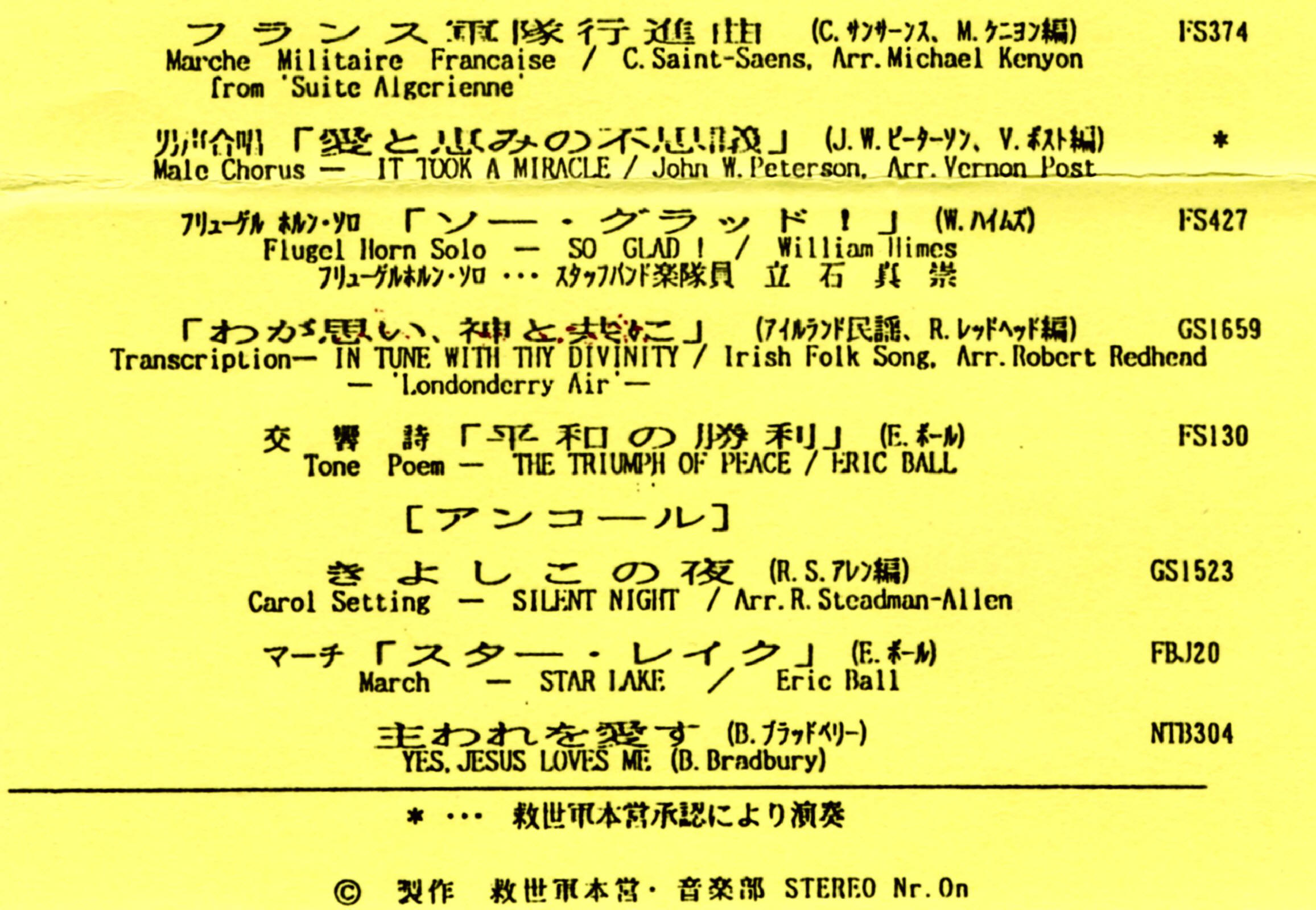 | Yes, Jesus Loves Me | Japan Staff Band | Hajime Suzuki | B. Bradbury |