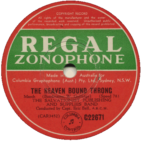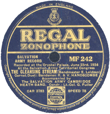 Ronald & Victor Handscombe with Cambridge Heath Band - UK Territorial Congress - Recorded at The Crystal Palace 23 June 1934 |