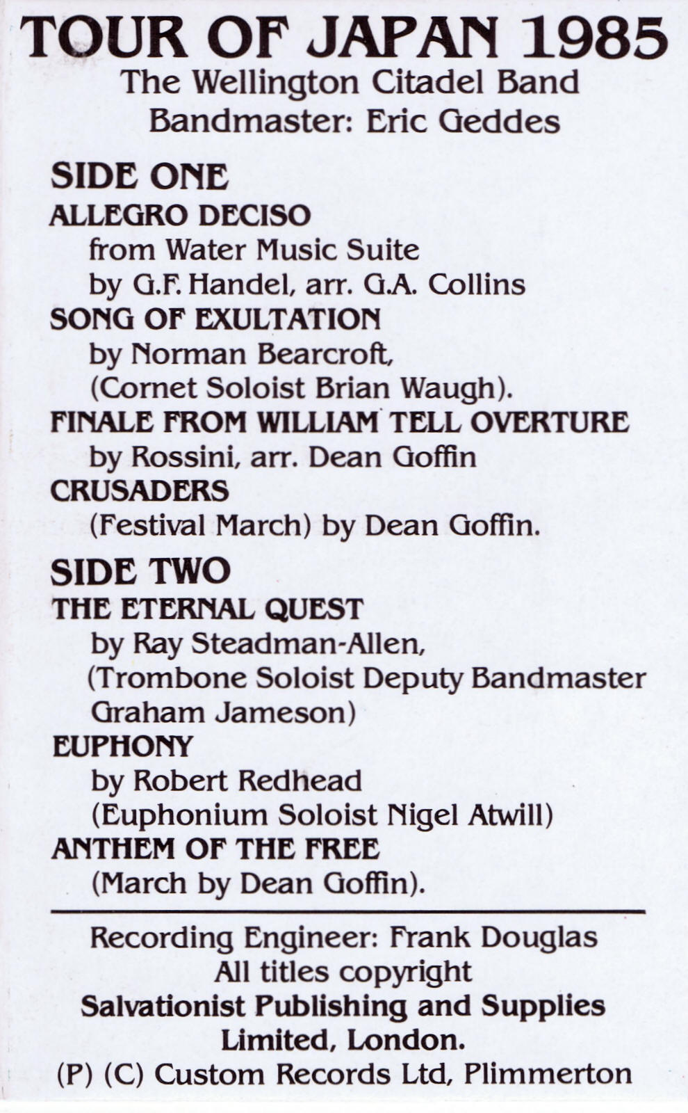 | Song of Exultation | Wellington Citadel Band - Soloist - Brian Waugh | Eric Geddes | Norman Bearcroft |