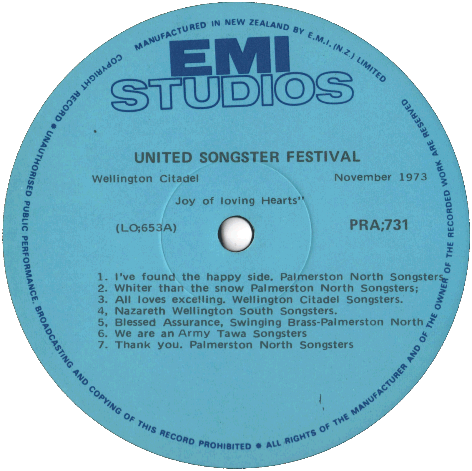 | I've Found the Happy Side | Palmerston North Songsters | N. Mann | |