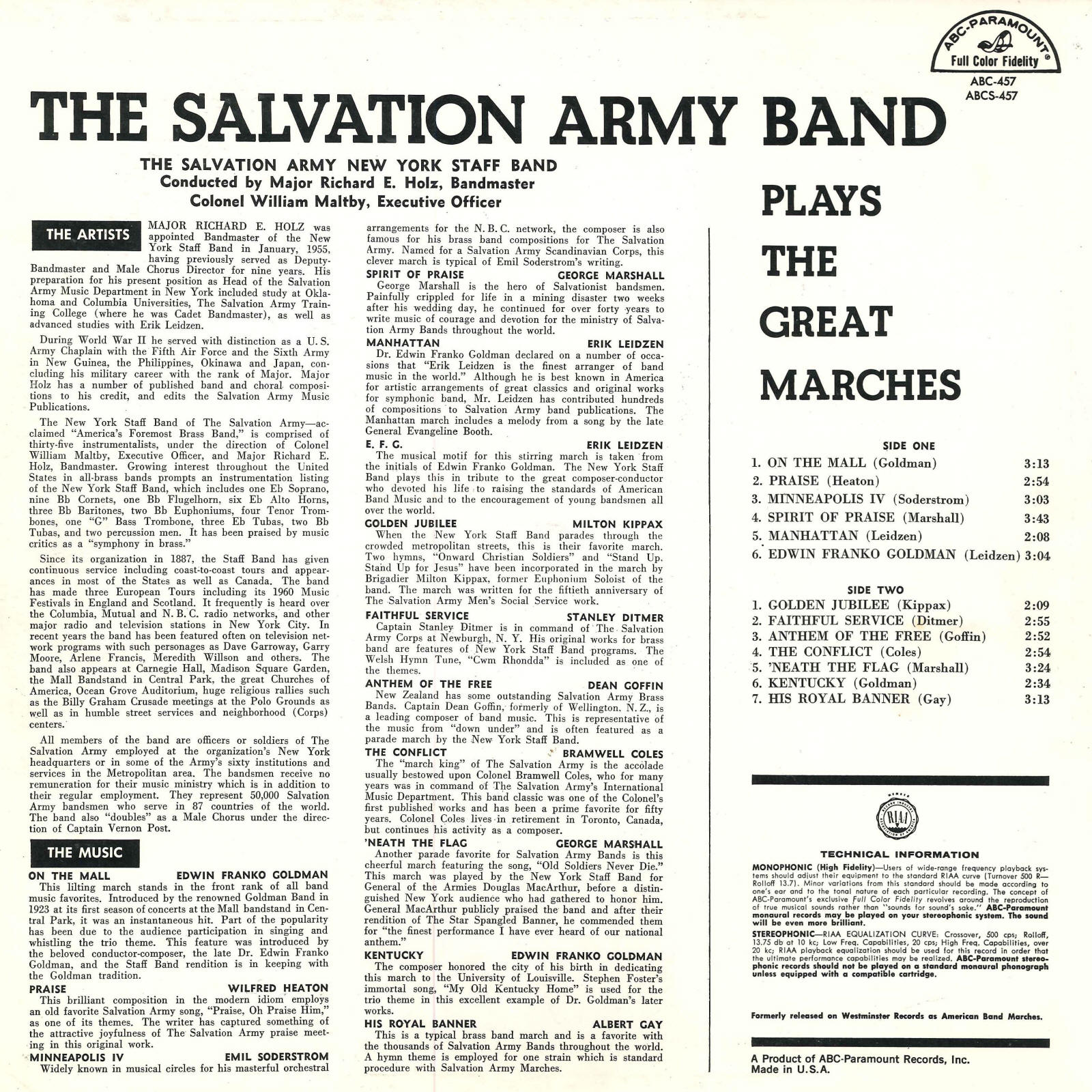 Spirit of Praise New York Staff Band Major Richard E. Holz George Marshall