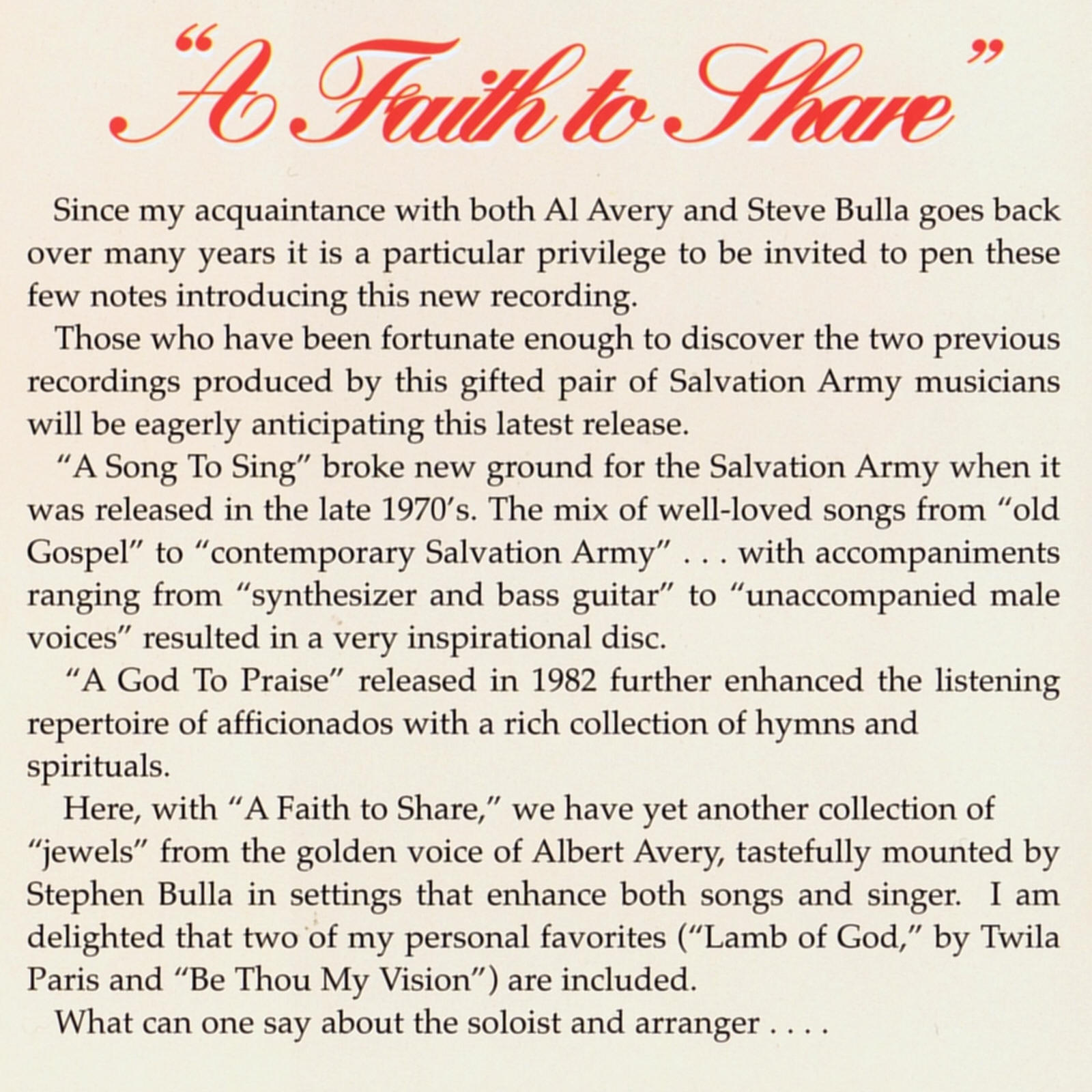 A Tribute to Salvation Army Musicians, Music and Composers