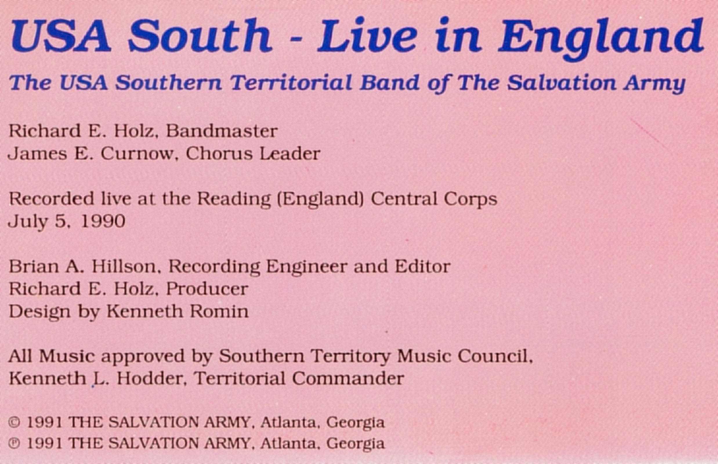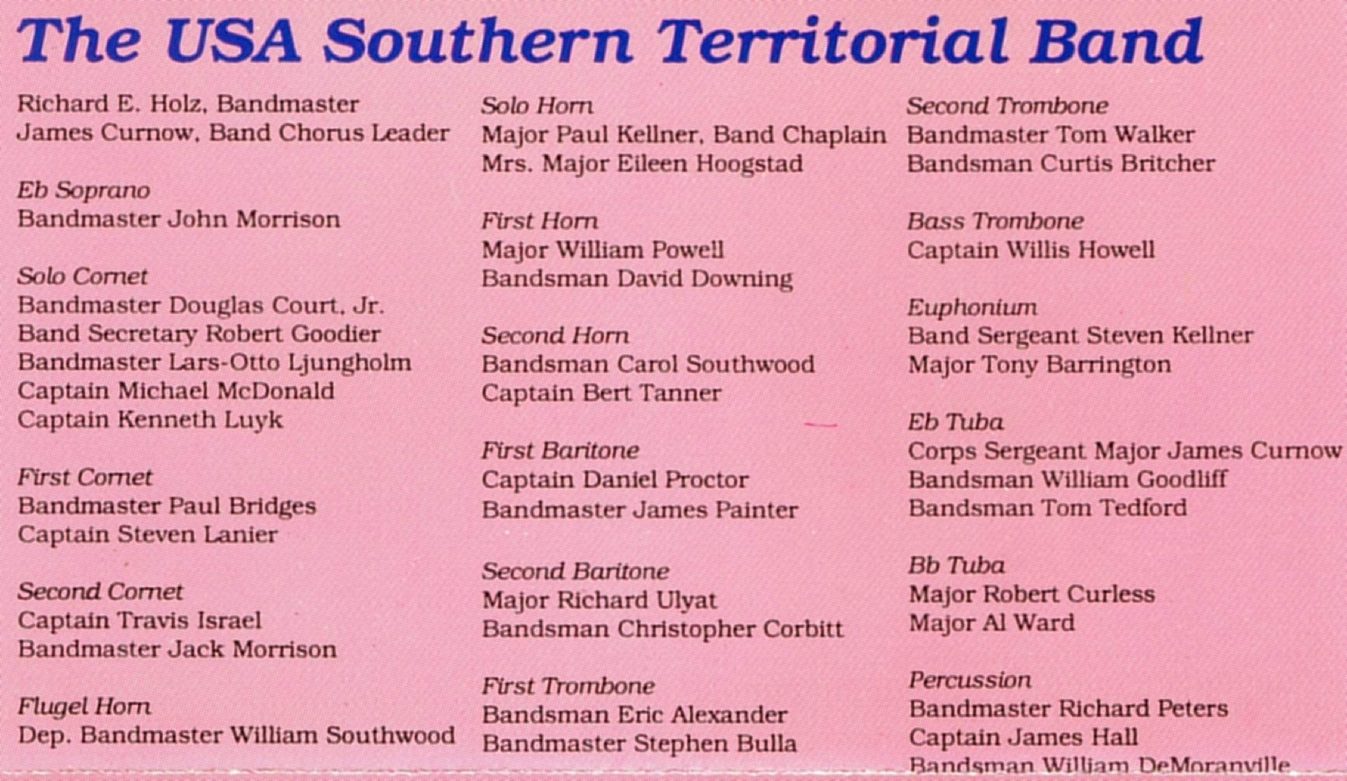 | Marching Along | The USA Southern Territorial Band & Congregation | Richard E. Holz | James Curnow |