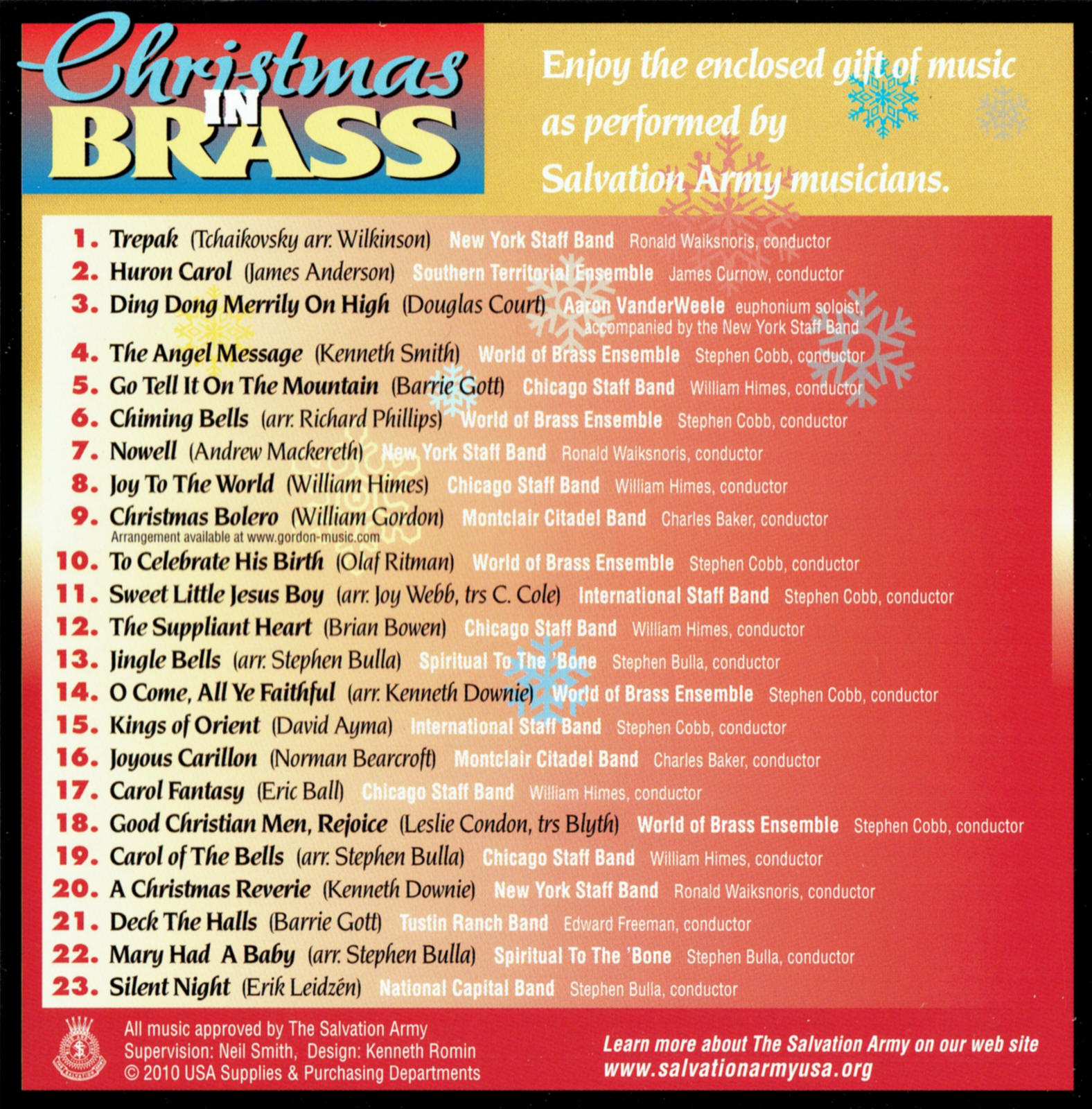 | Carol of the Bells | Chicago Staff Band | William Himes | arr. Stephen Bulla |