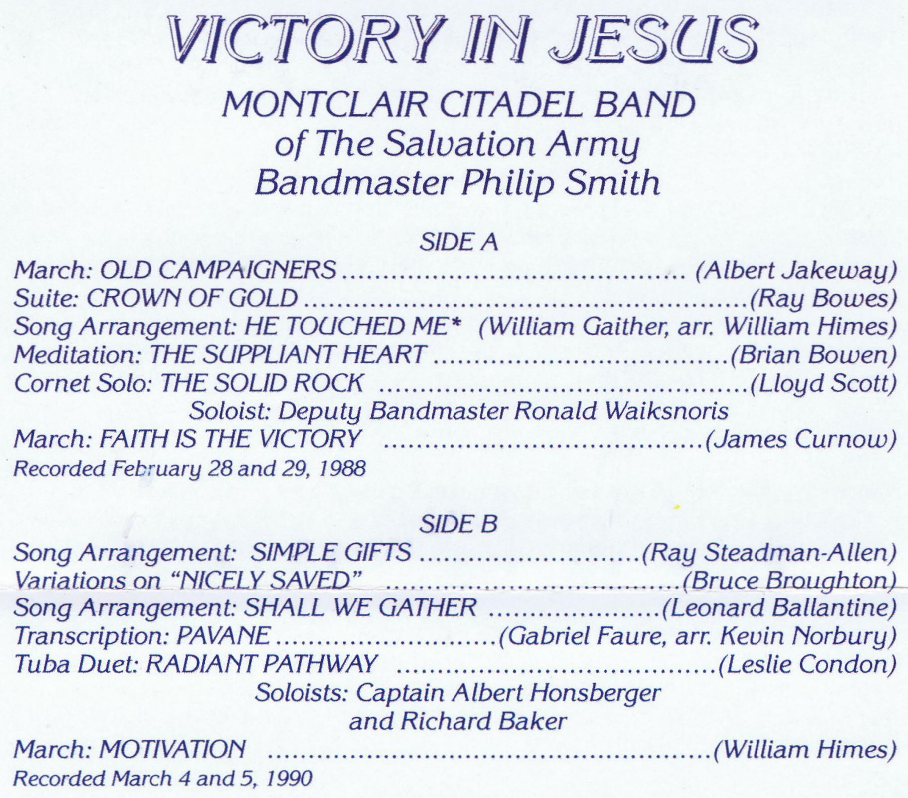 A Tribute to Salvation Army Musicians, Music and Composers