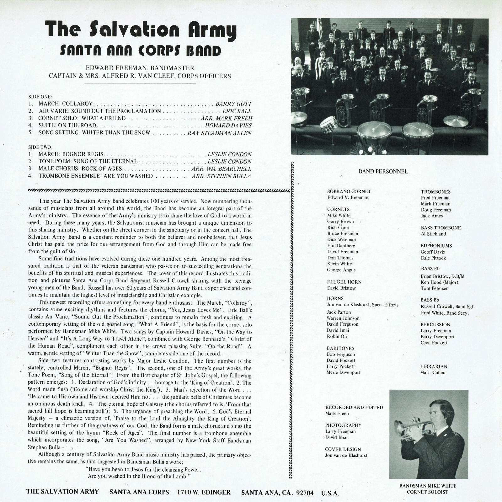 | Song Setting - Whiter Than Snow | Santa Anta Corps Band | Edward Freeman | Ray Steadman-Allen |