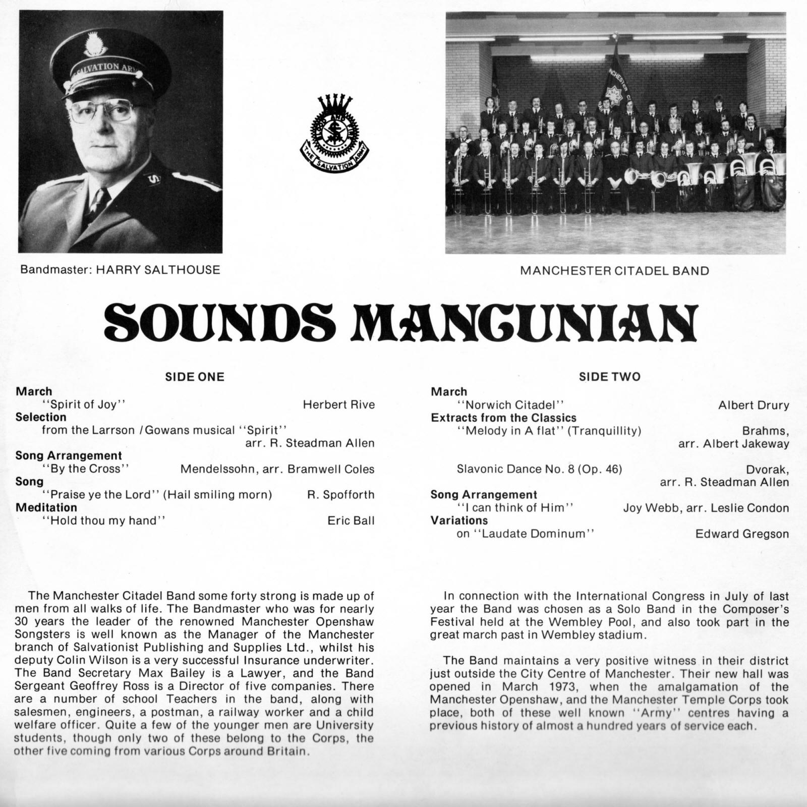 | Selection - From the Musical 'Spirit' | Manchester Citadel Band | Harry Salthouse | Larrson/Gowan arr. Steadman-Allen |