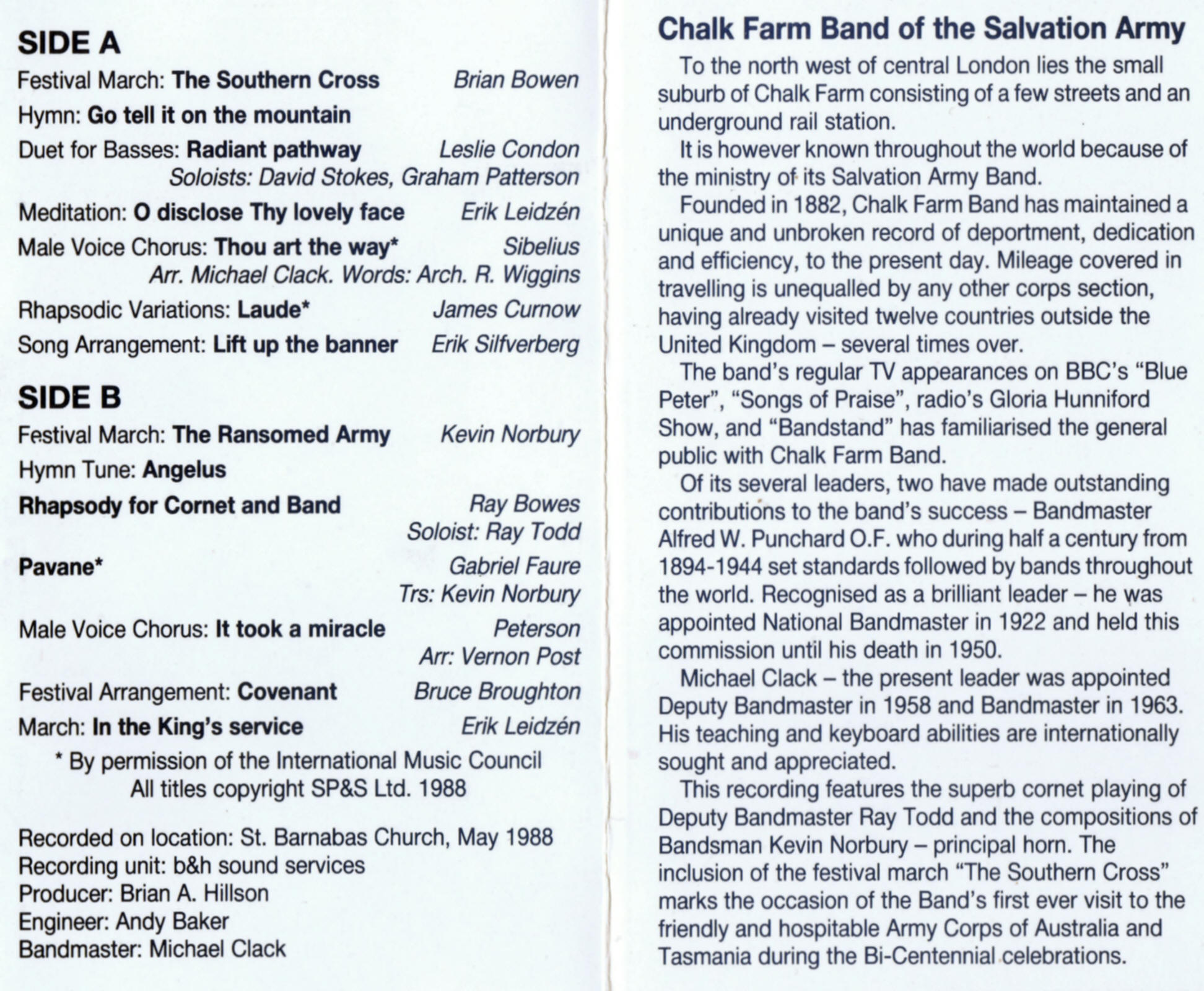 | Rhapsody for Cornet and Band | Chalk Farm Band - Soloist - Ray Todd | Michael Clack | Ray Bowes |