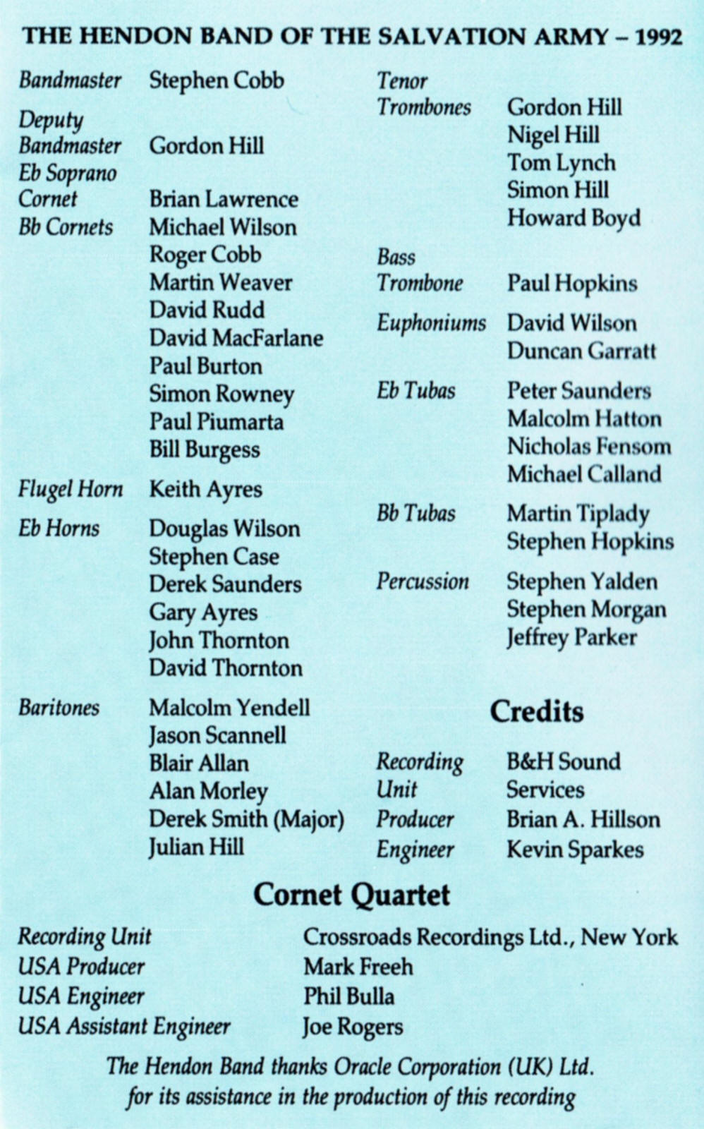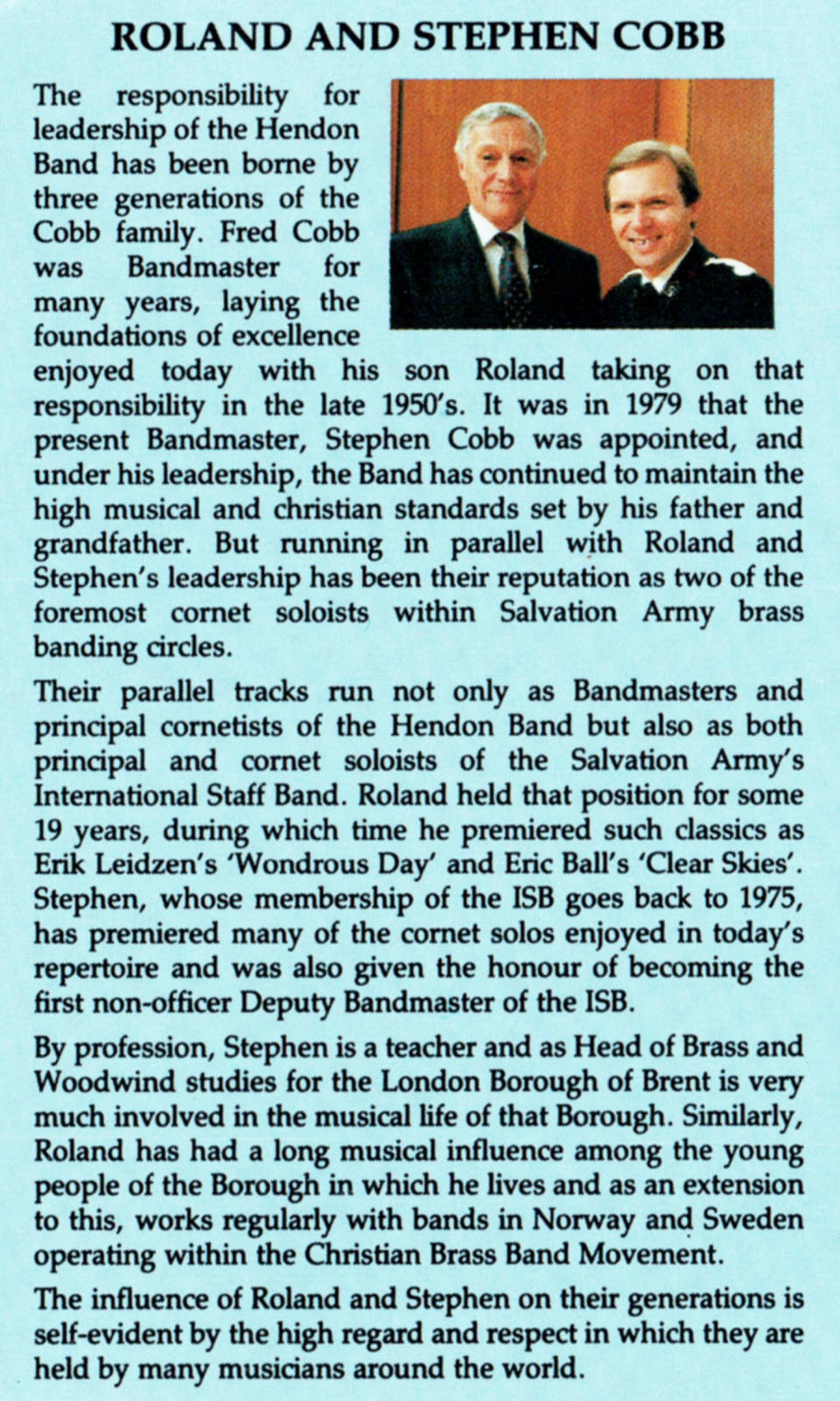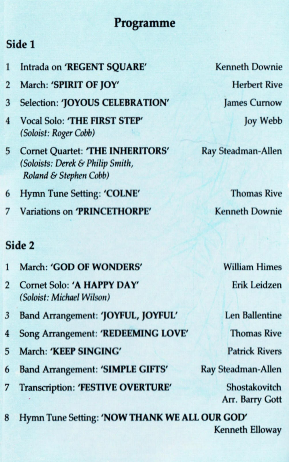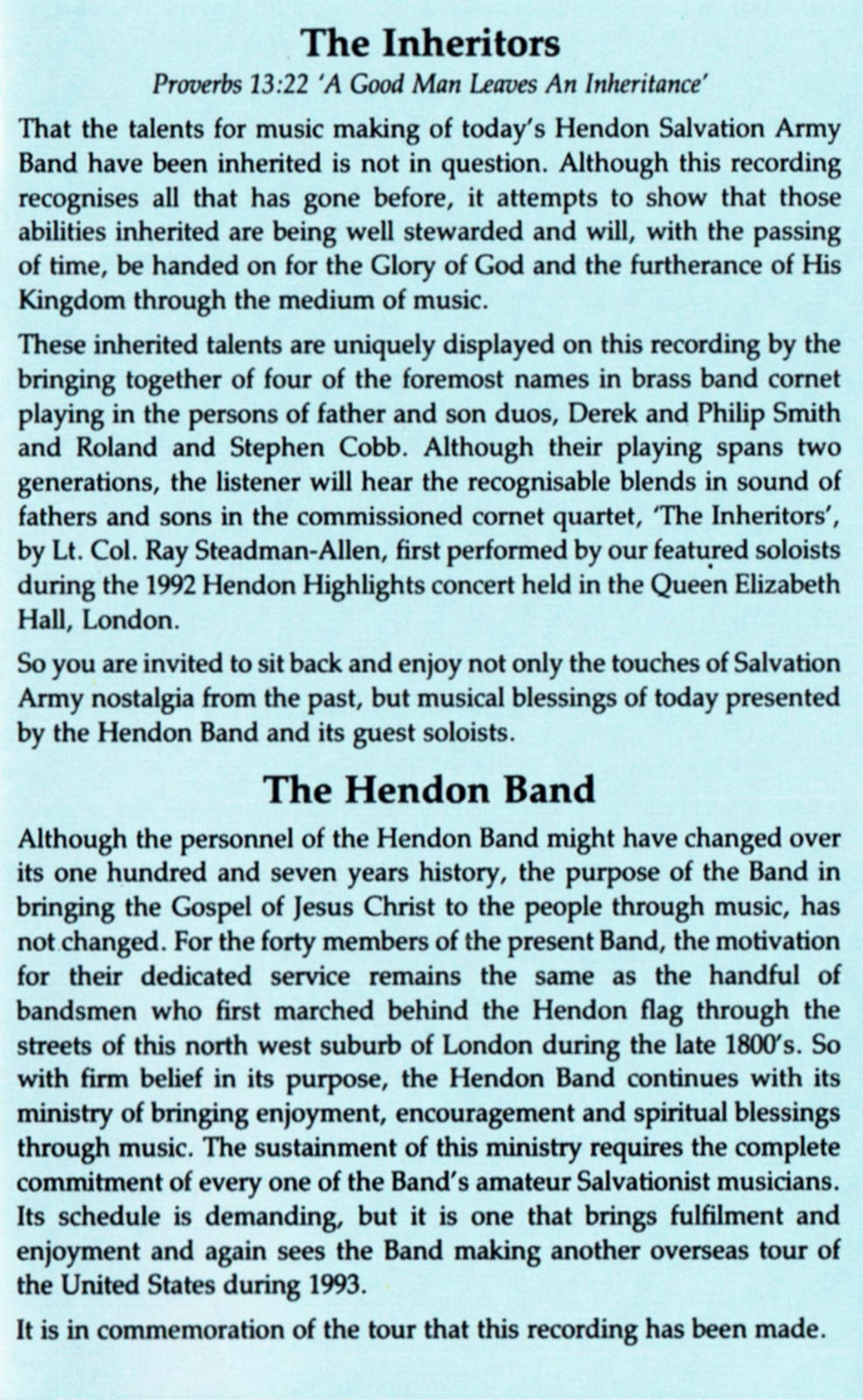 | Cornet Quartet - The Inheritors | Hendon Band - Soloists Derek & Philip Smith, Roland & Stephen Cobb | Stephen Cobb | Ray Steadman-Allen |
