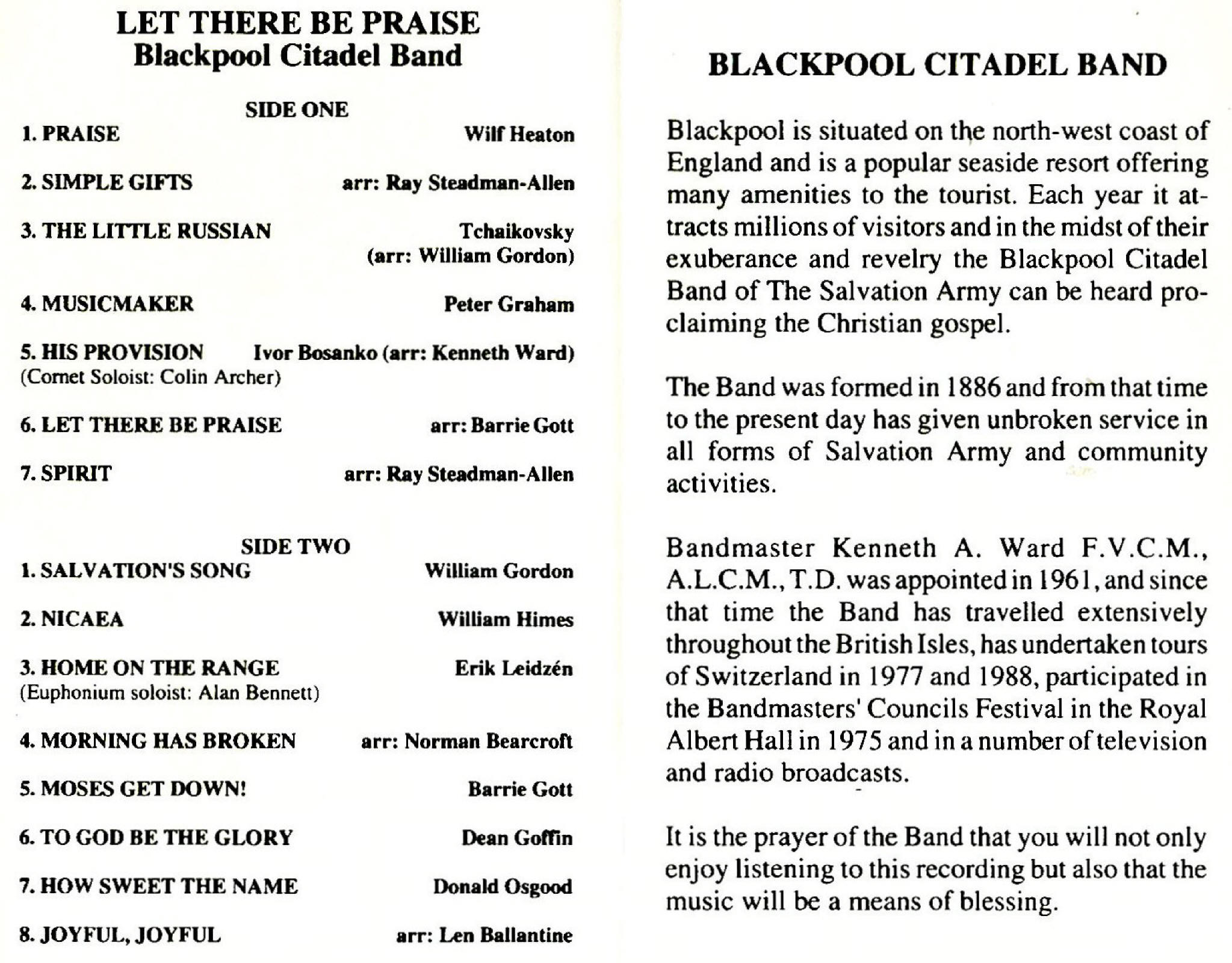 Praise Blackpool Citadel Band Kenneth Ward Wilf Heaton