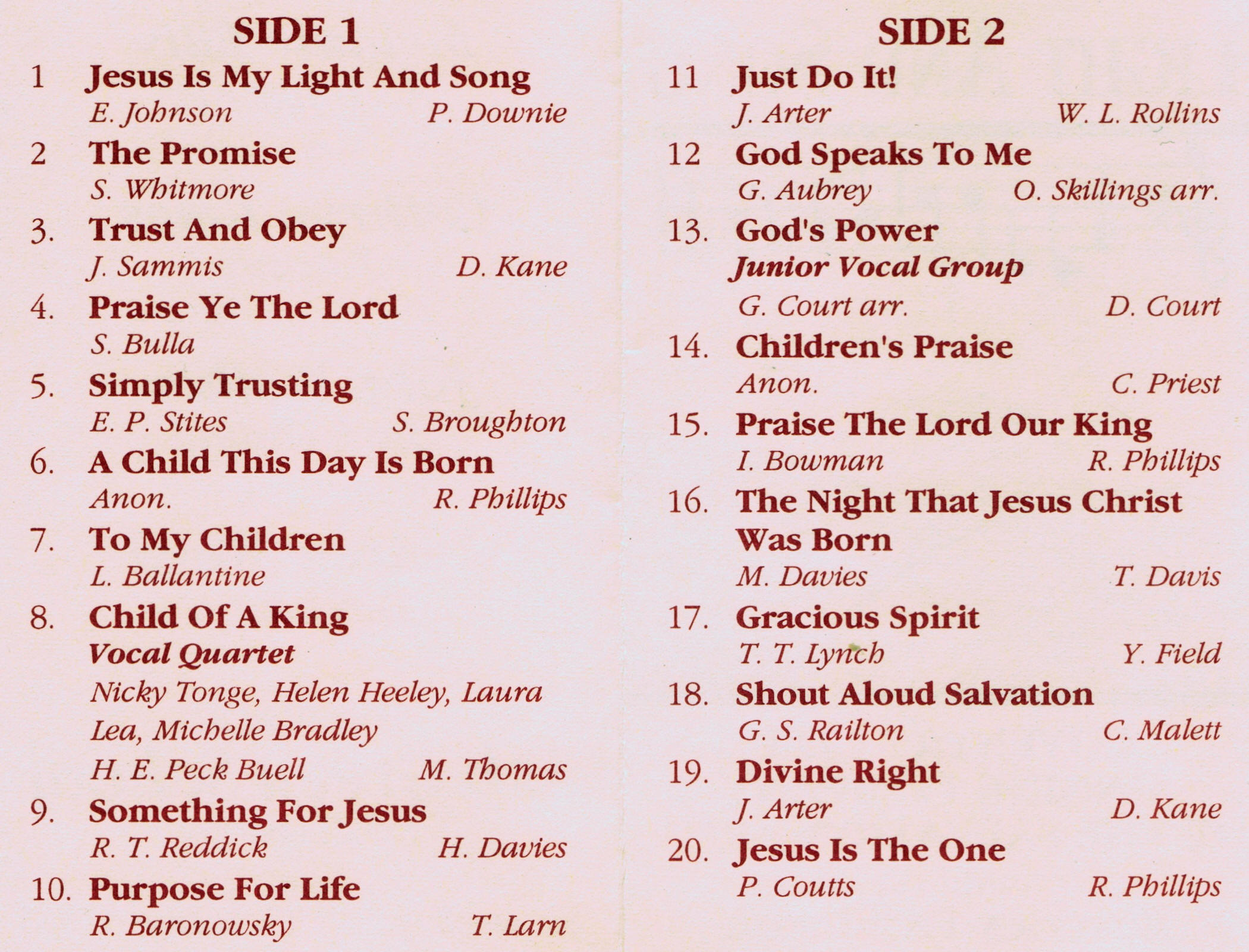 | Something for Jesus | Coventry City Singing Company | Beverley Parkinson | R.T. Reddick/H. Davies |