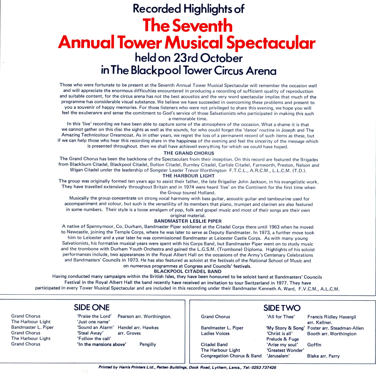 | My Story & Song | Blackpool Citadel Band - Soloist - Leslie Piper | Leslie Piper | Foster arr. Steadman-Allen |