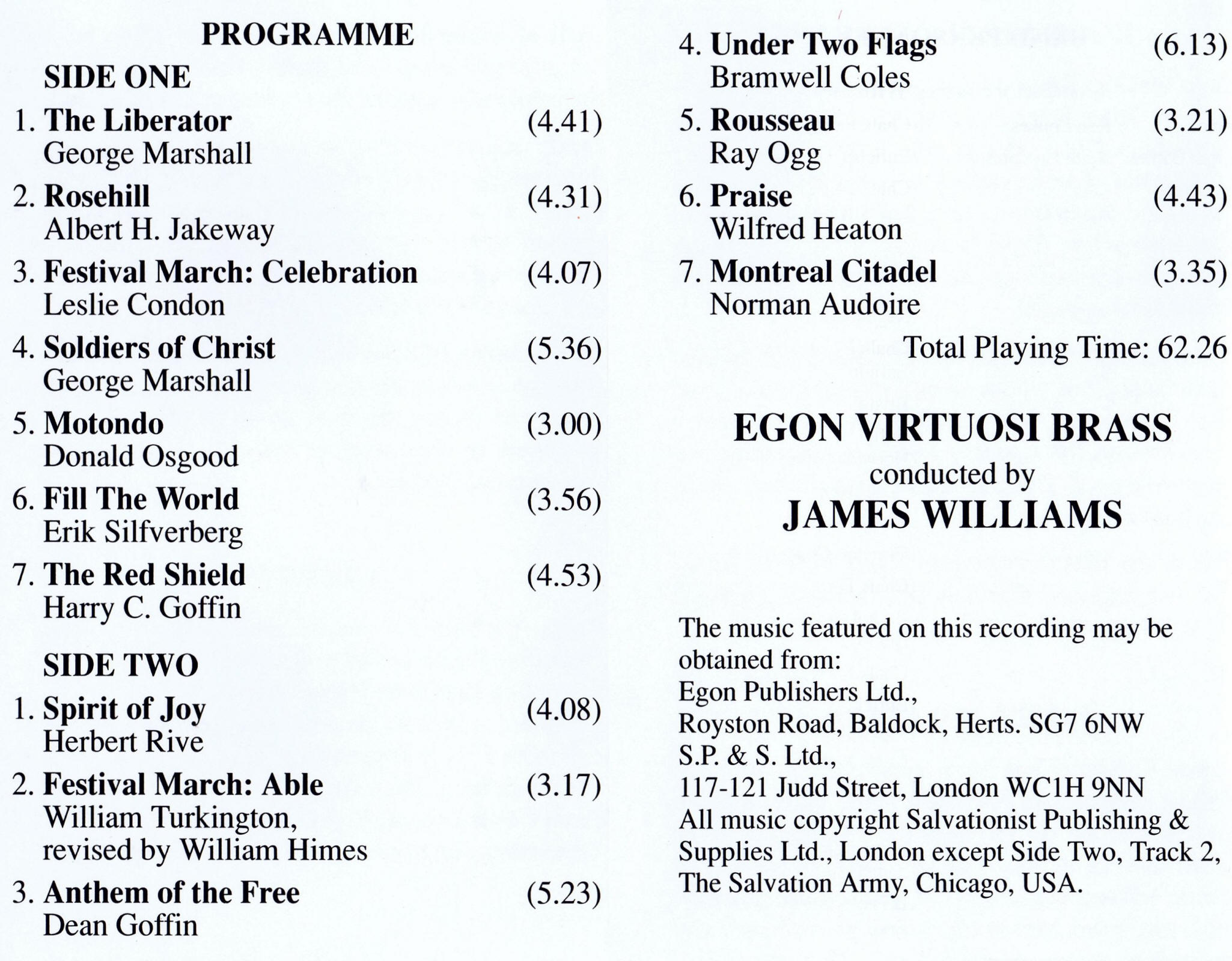 | Soldiers of Christ | Egon Virtuosi Band | James Williams | George Marshall |