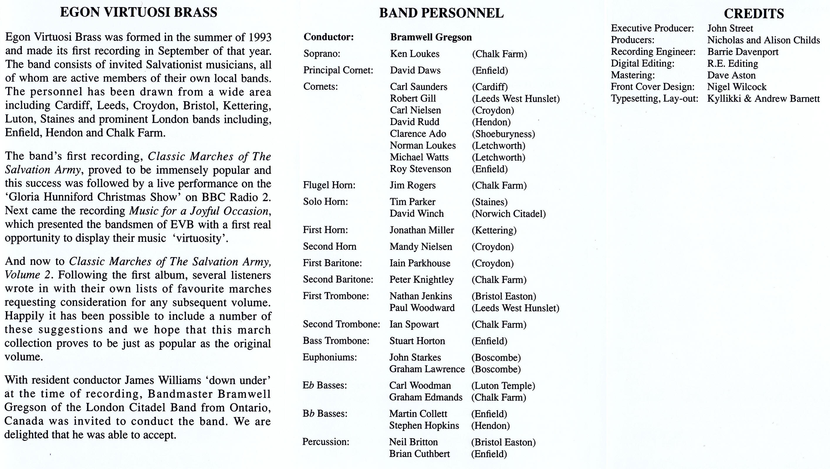 Stapleford Citadel Egon Virtuosi Band Bramwell Gregson Charles Dove