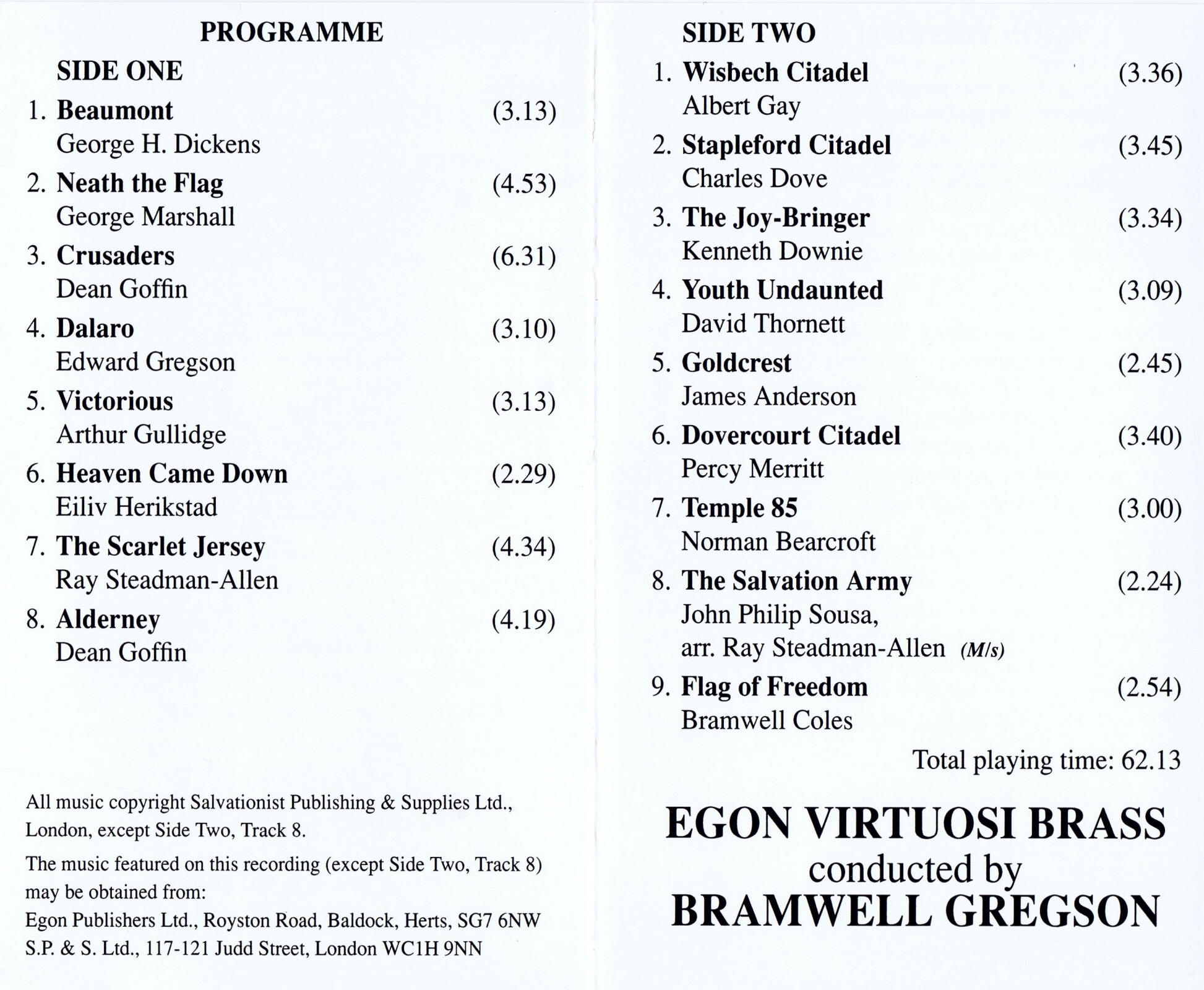 Wisbech Citadel Egon Virtuosi Band Bramwell Gregson Albert Gay