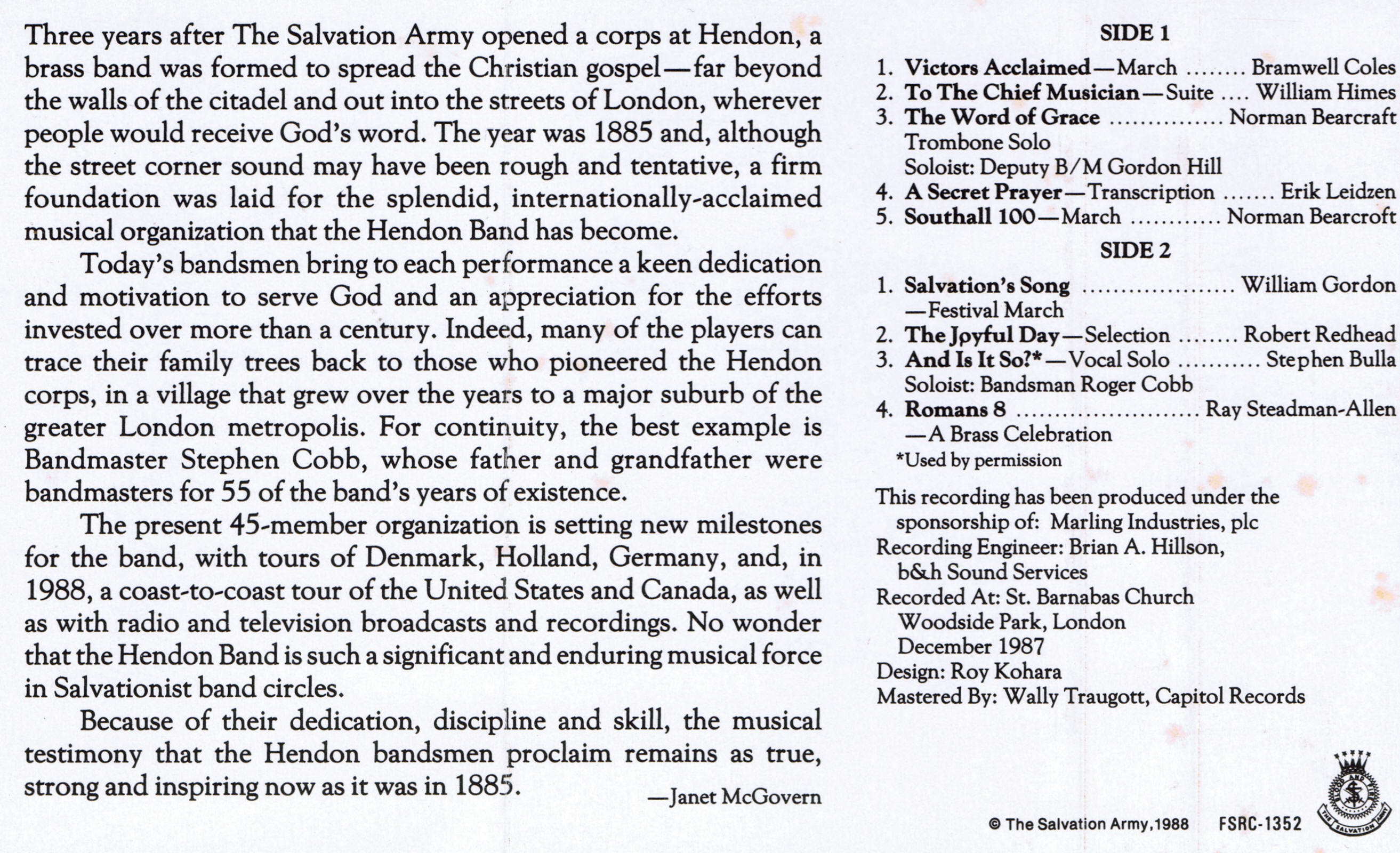 A Tribute to Salvation Army Musicians, Music and Composers